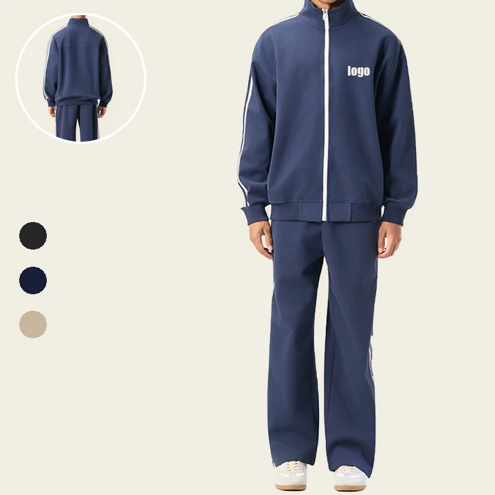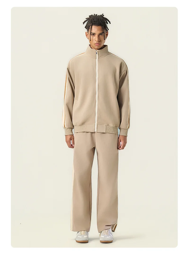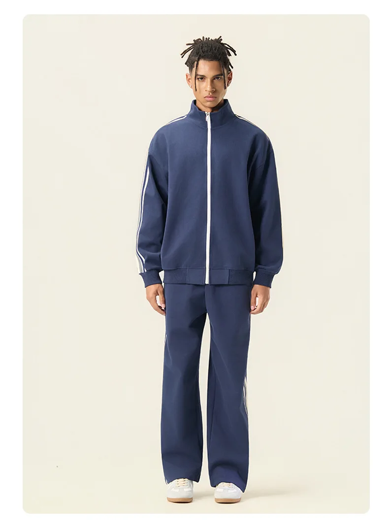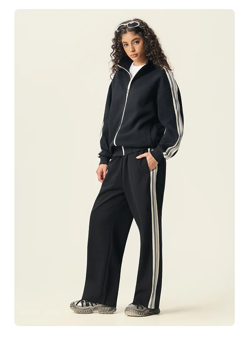 2026 Stripe Stand Collar Long Sleeve High Quality Jogger Set Winter Sweatsuits Embroidery Sweatsuit