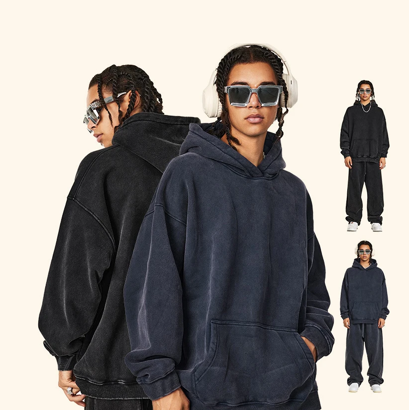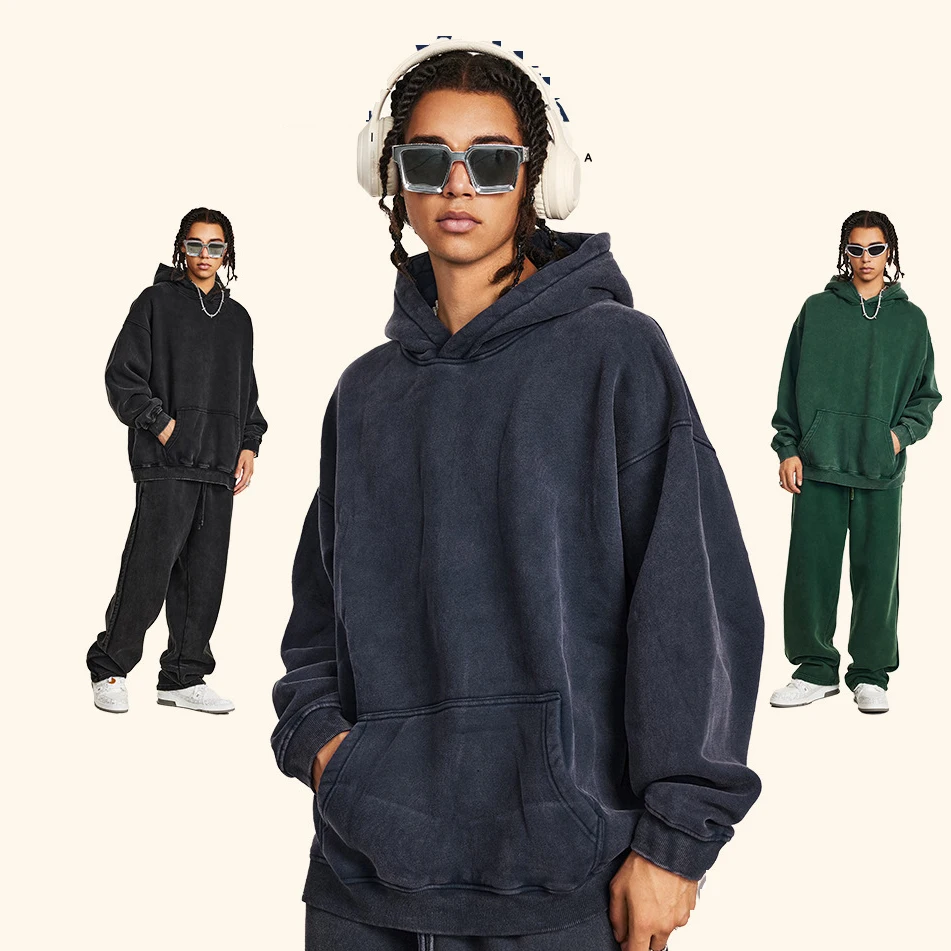 Manufacturers Autumn 360 GSM Vintage Long Sleeve Washed Distressed Hoodie Heavyweight Fleece Oversized Hoodie