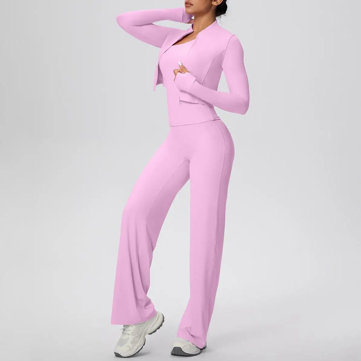 YISHENHON Recyclable Fabric Quick Dry Yoga V Waist Gym Leggings Running Workout Wide Leg Pants Flare Woman Sport Pants