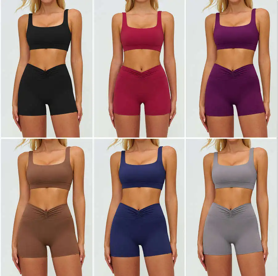 Women Sports Bra Shorts Pants Butter Soft Workout High Stretch Sports Fitness Yoga Wear Exercise Yoga Clothing 2 Piece Wear Set