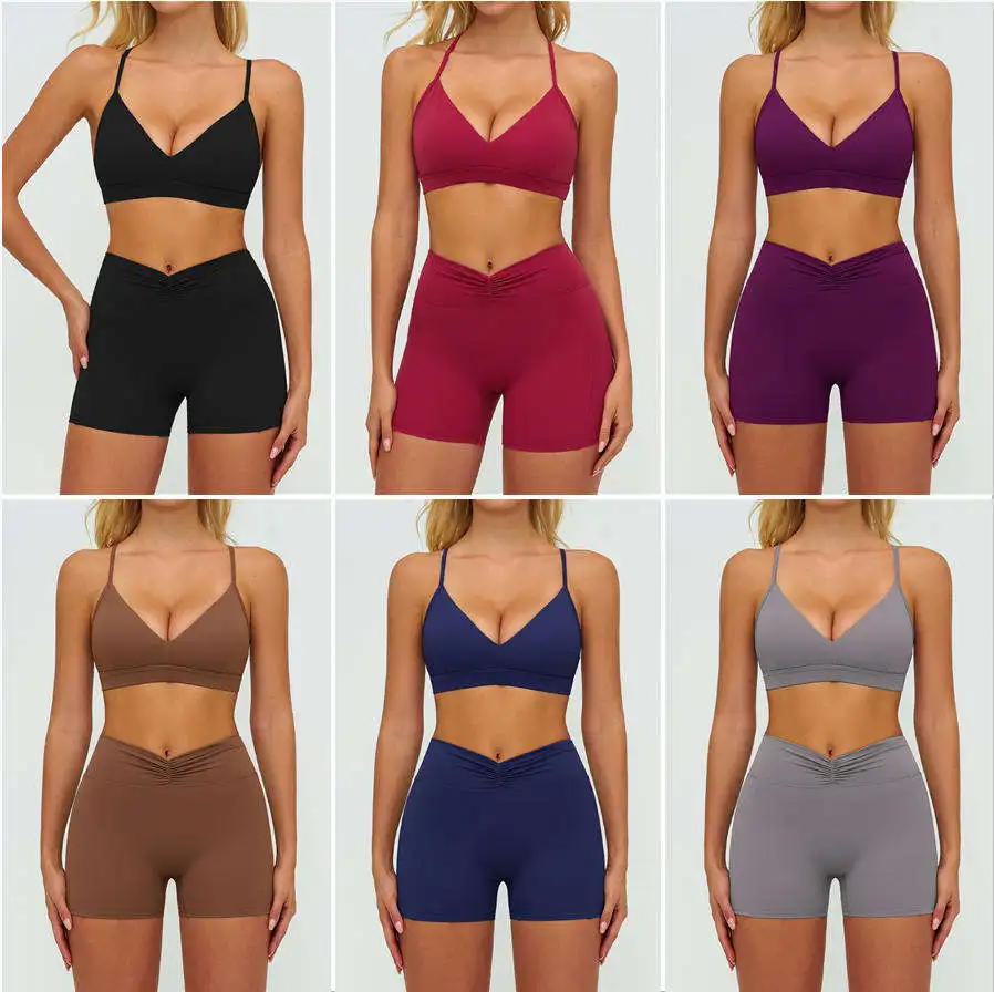 2 Pieces Workout Sets for Women Sexy Y Back Workout Tops Gym Activewear High Quality Sports Bra Butt Lifting Shorts Yoga Sets