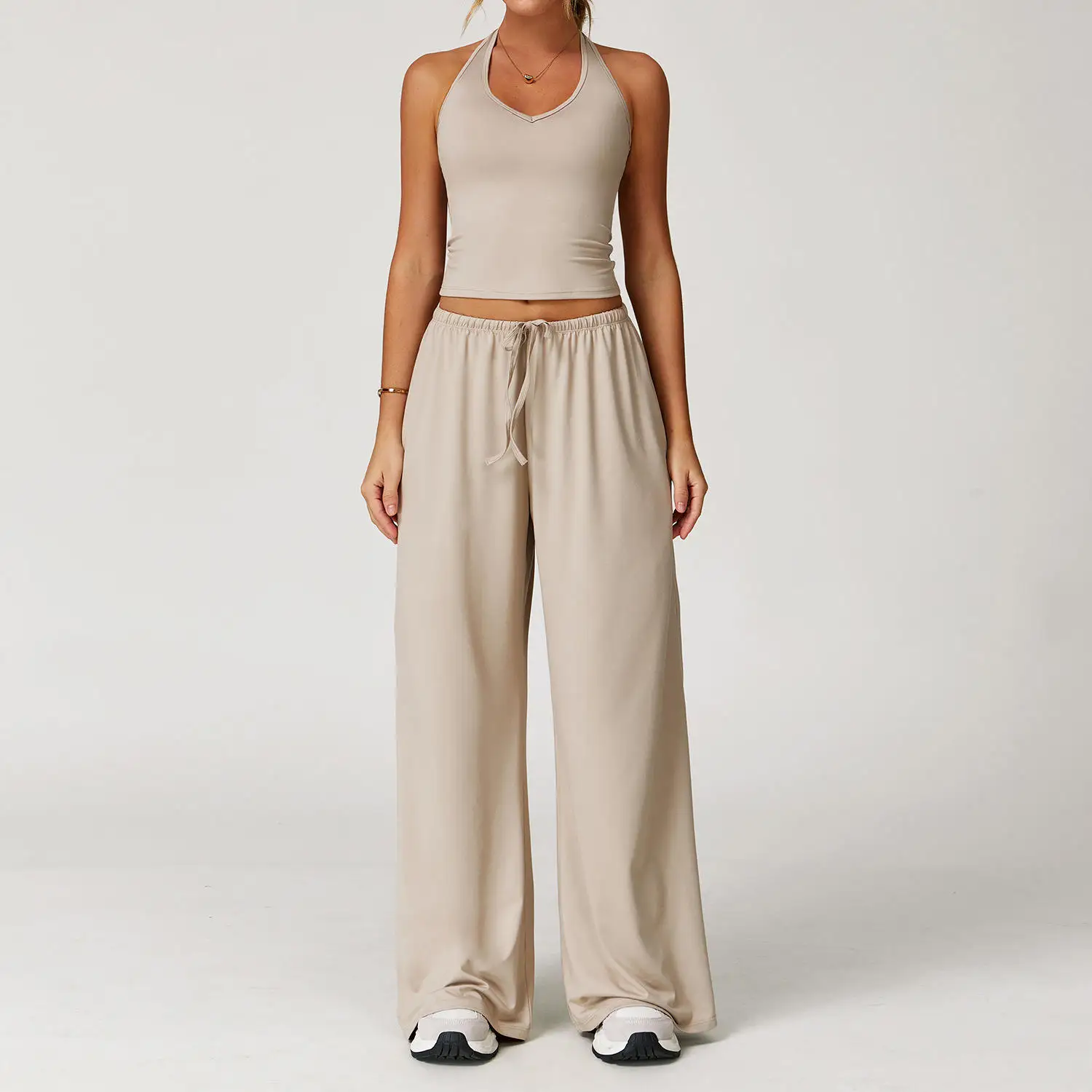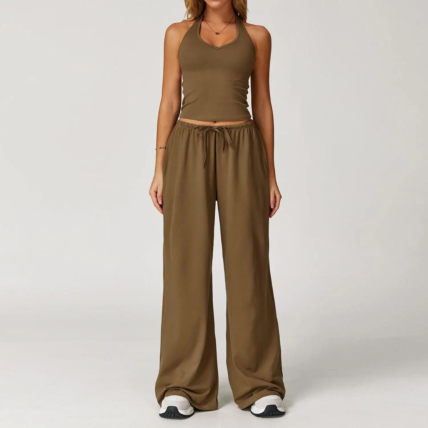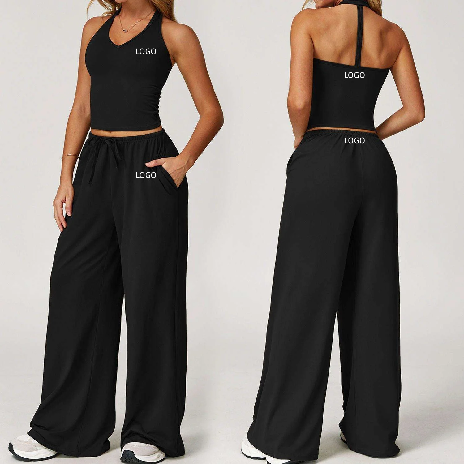 YISHENHON Recyclable Fabric Quick Dry Yoga V Waist Gym Leggings Running Workout Wide Leg Pants Flare Woman Sport Pants