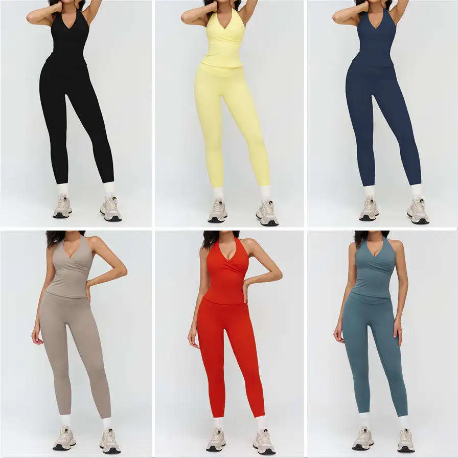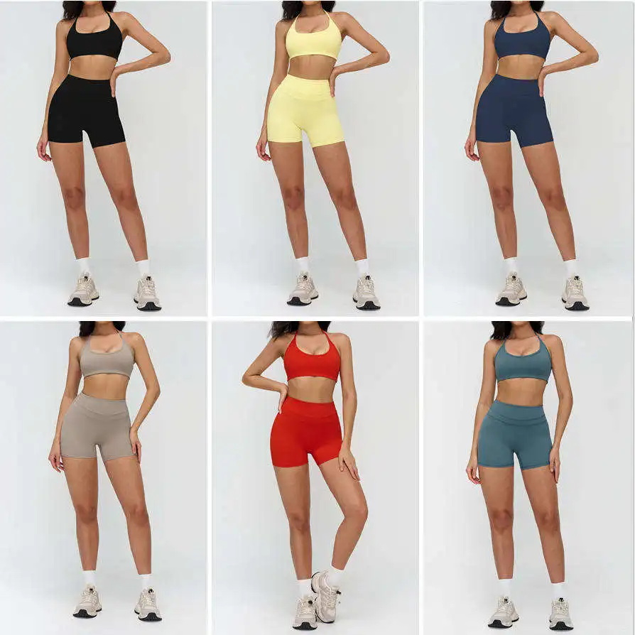High Quality 2 Piece Gym Fitness Sets Activewear Sport Bra Tank Top Biker Shorts Pants Women's Yoga Clothing Pilates Set