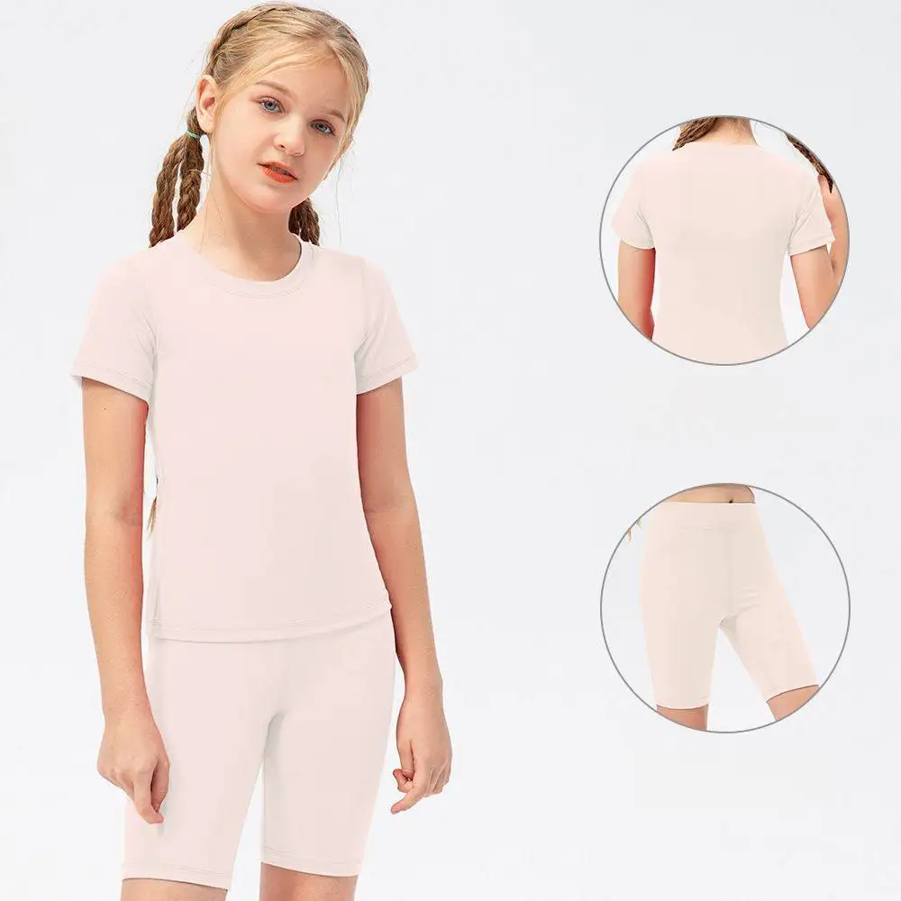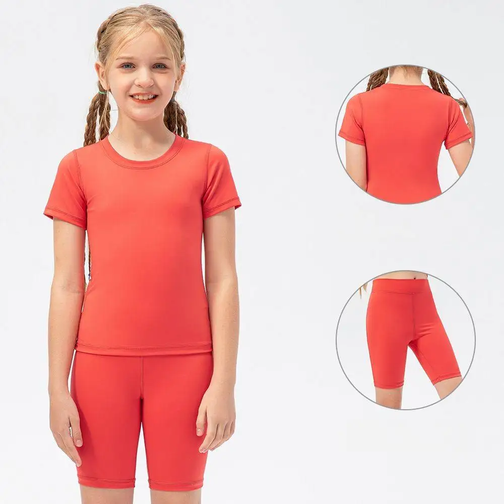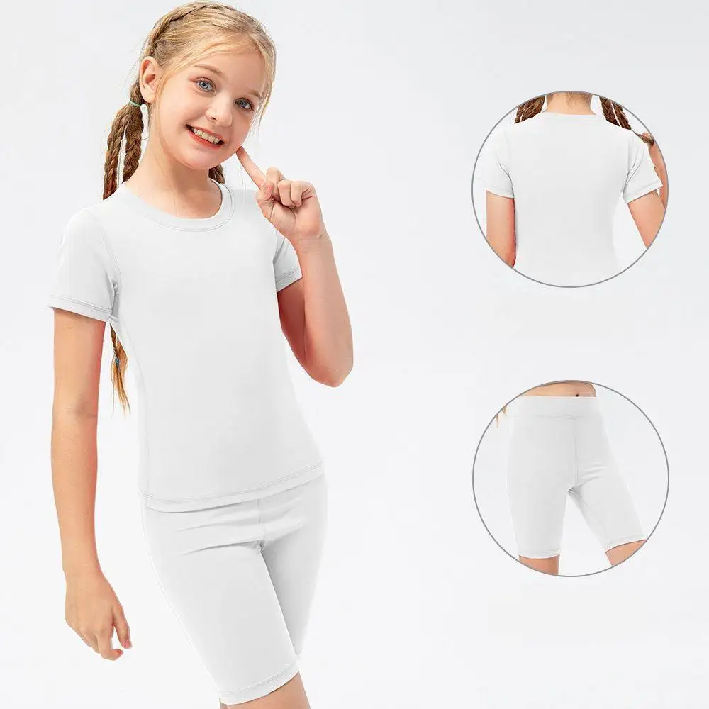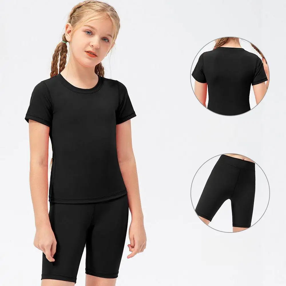Round Neck Short Sleeve Drop Shipping Kids Yoga Sports Shorts and T Shirt Two-piece Set