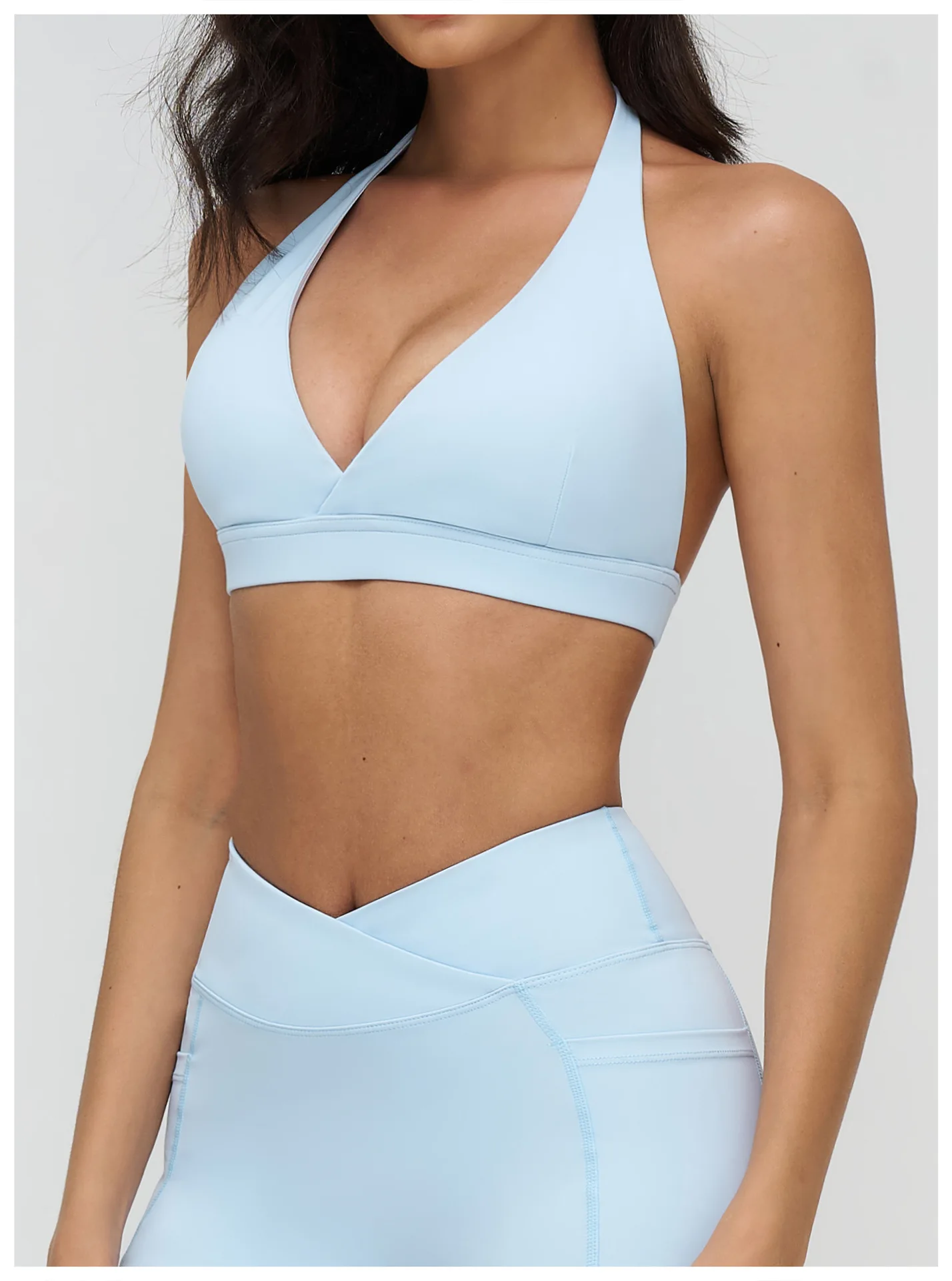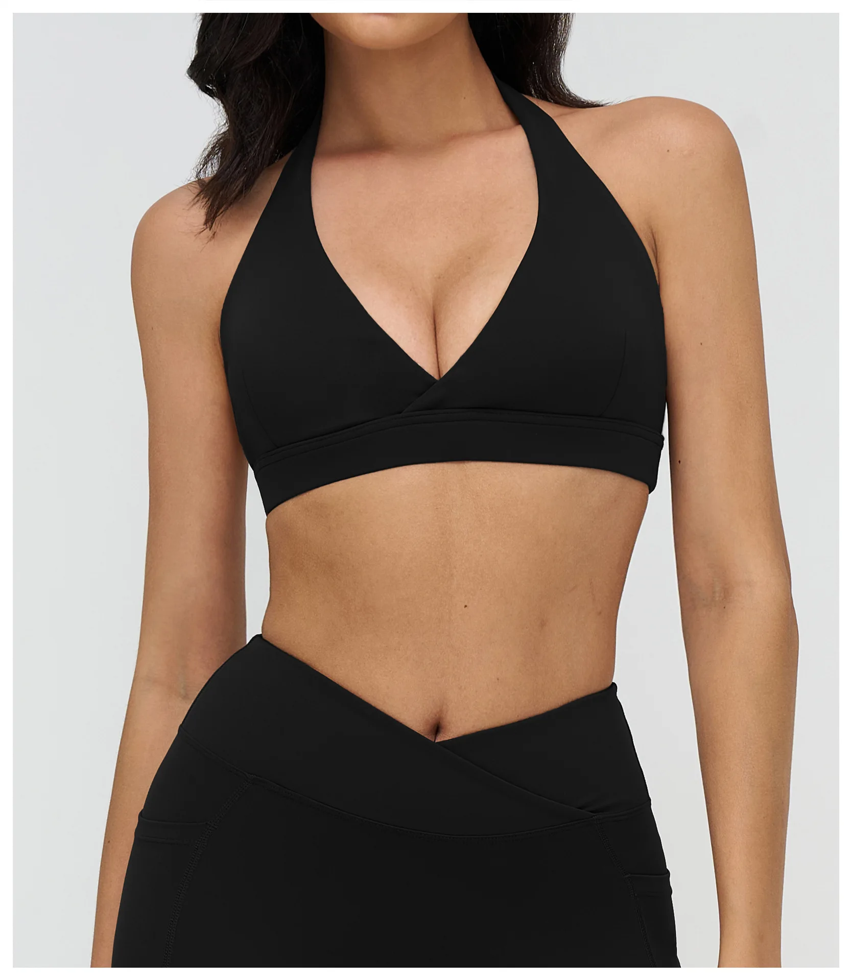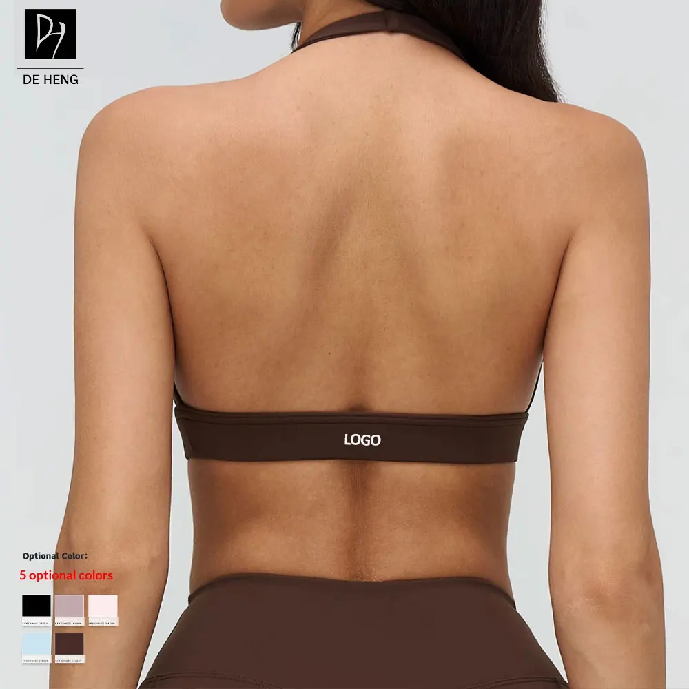 Custom Deep V-neck Design Push up Backless Sports Bra Solid High Impact Fitness Halter Hollow Out Yoga Women Sports Bra