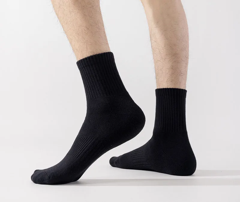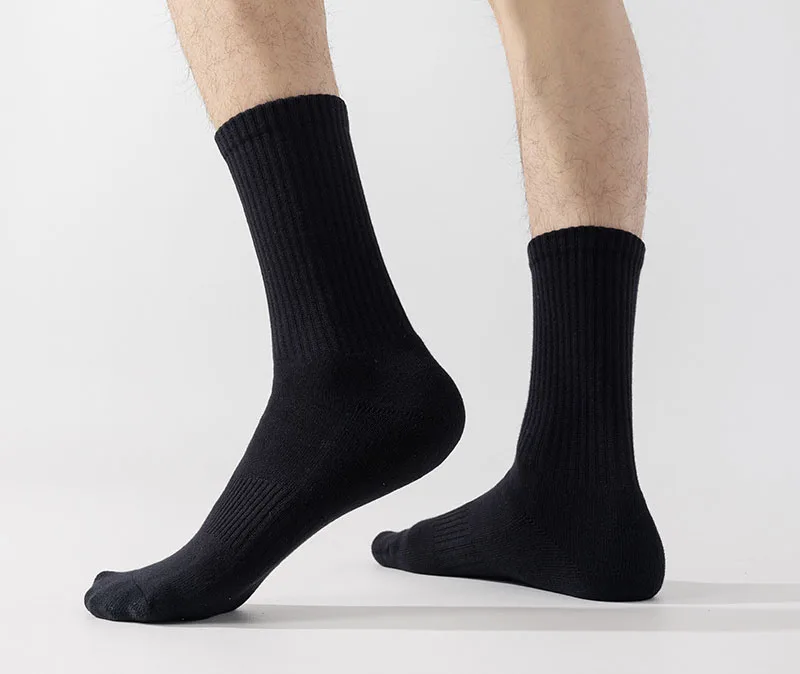 Black and White Solid Color Men's Thickened Towel-bottom Sweat-absorbent Breathable Cotton Sports Terry Socks