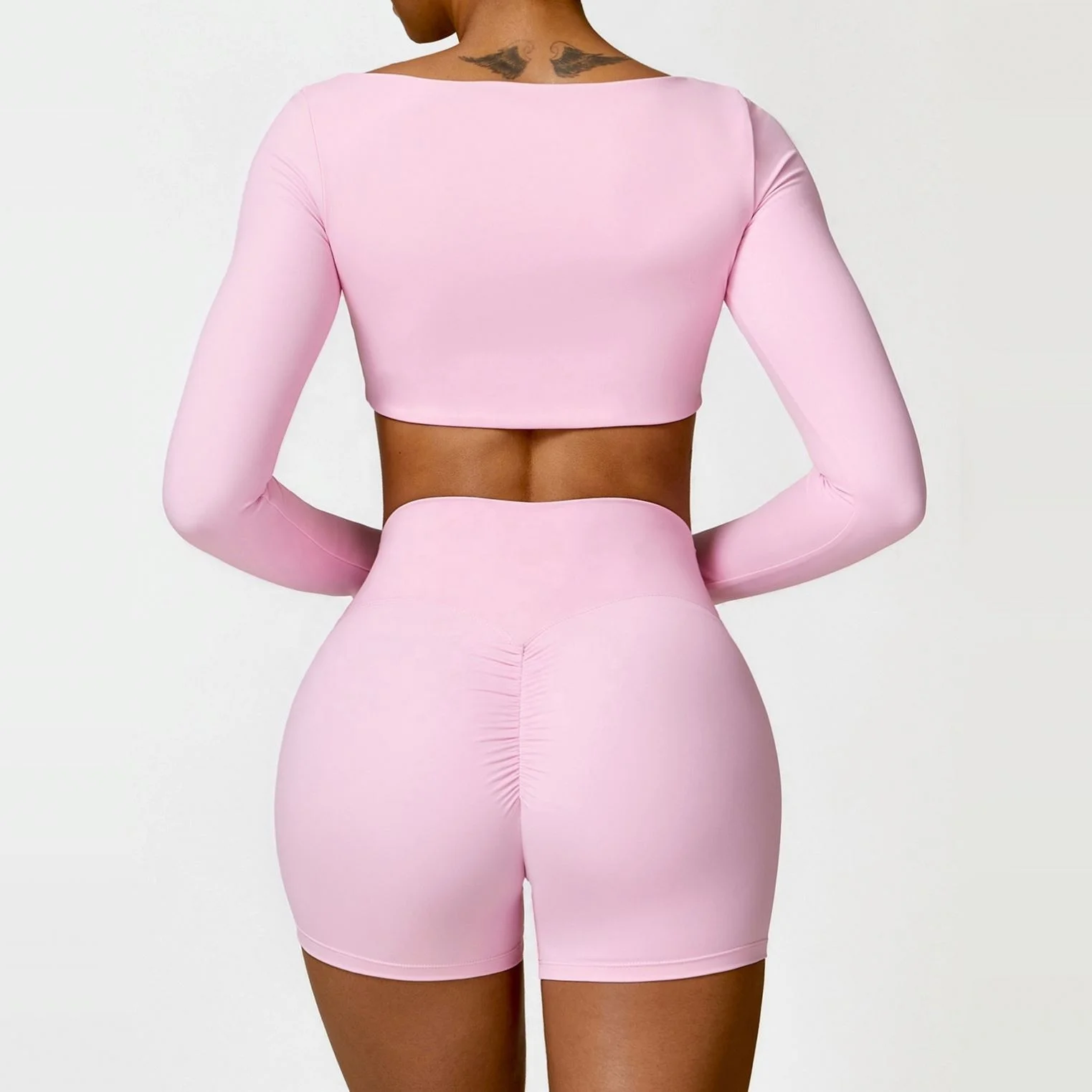 High Quality Long Sleeves Hanging Neck Yoga Clothing Tight Quick Dry Sports Fitness Yoga Pilates Outfit