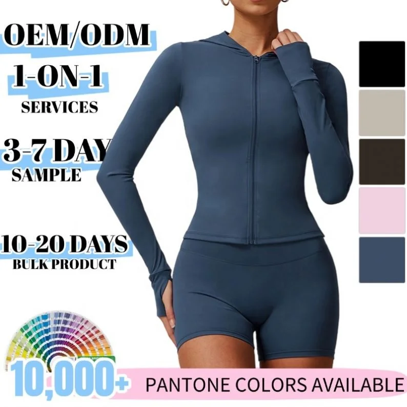 YISHENHON Custom Logo Slim Workout Top Yoga Jackets Zipper Womens Tight Quick Dry Long Sleeve Yoga Sports Coat With a Hat