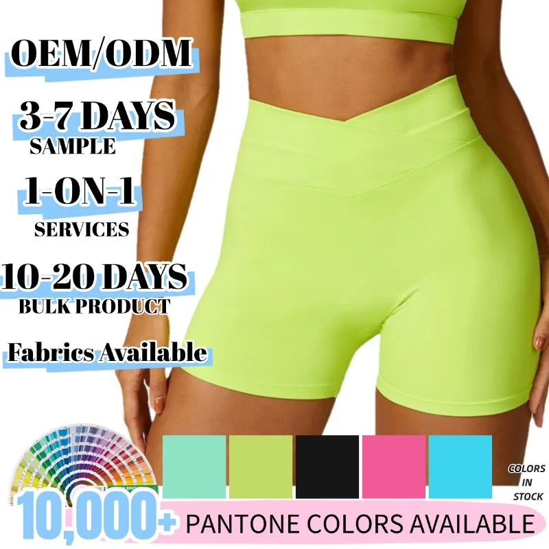 Women's High-Waist Sports Yoga Shorts Quick-Drying Antibacterial Customizable Elastic Waist Solid Pattern XL Size Spandex