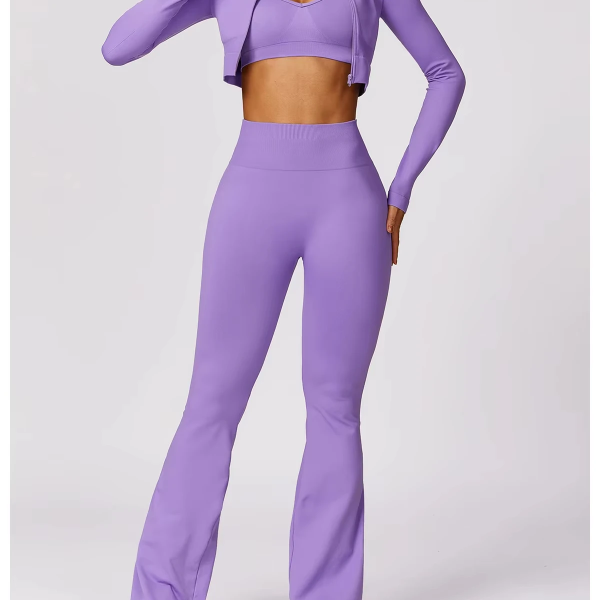 YISHENHON Recyclable Fabric Quick Dry Yoga V Waist Gym Leggings Running Workout Wide Leg Pants Flare Woman Sport Pants