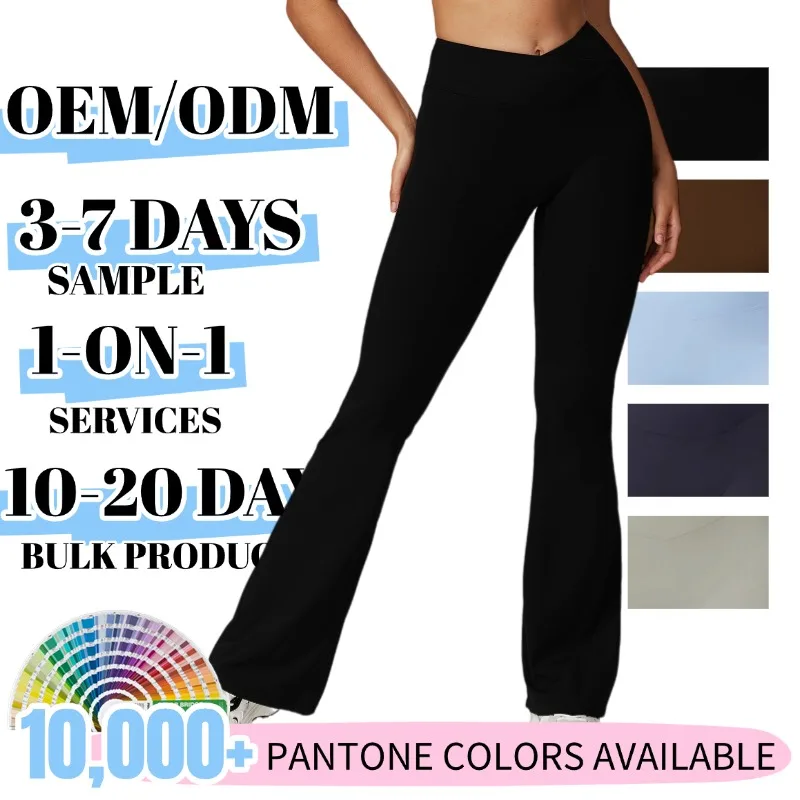YISHENHON Recyclable Fabric Quick Dry Yoga V Waist Gym Leggings Running Workout Wide Leg Pants Flare Woman Sport Pants