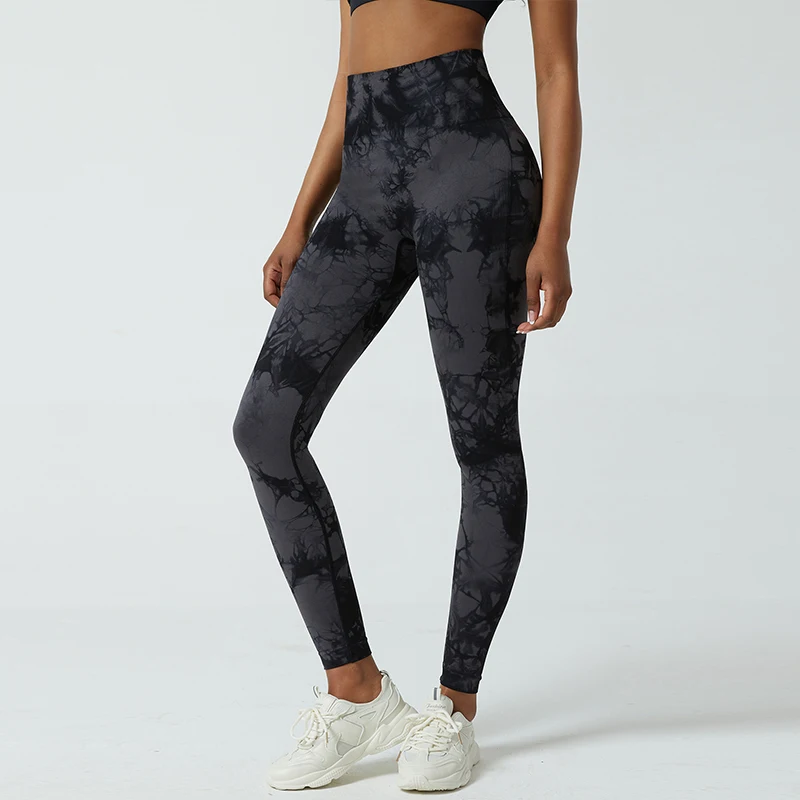 Women's Seamless Tie Dye Spandex Sports Yoga Pants Plus Size XL Push-Up Scrunch Butt Leggings With Quick Dry Feature Custom Logo