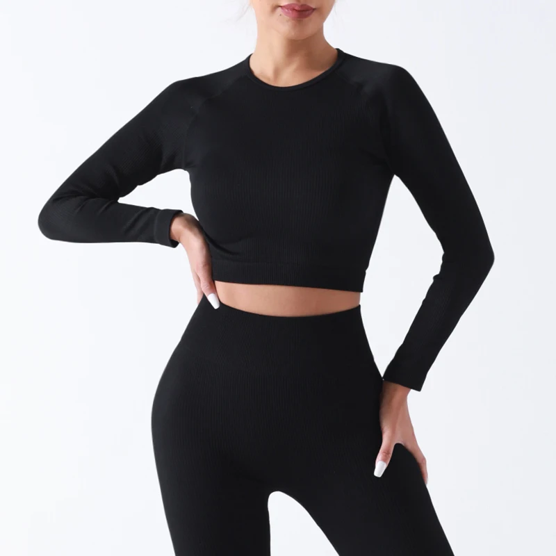 Wholesales Women's Long Sleeve Tops Slim Fit Workout Sports Tops