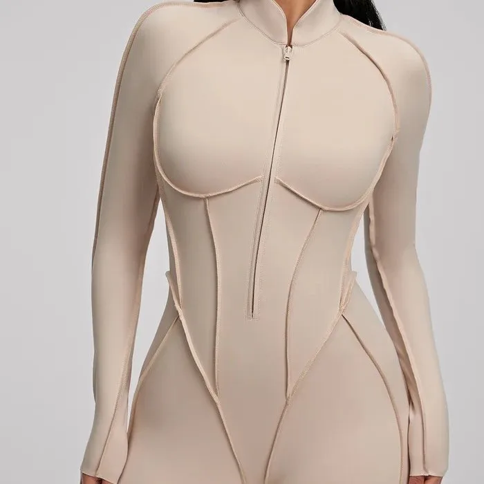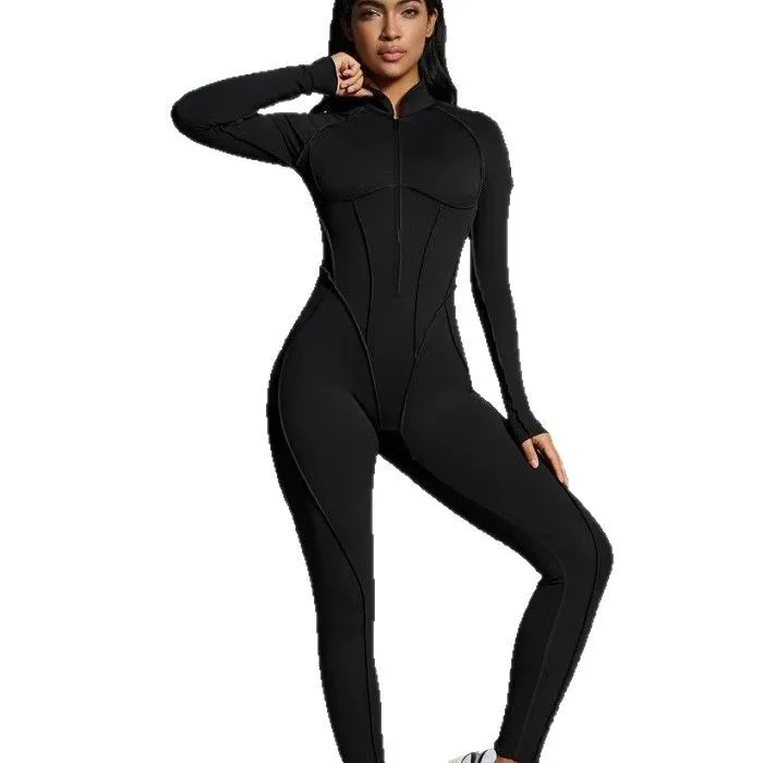 One Piece Workout Bodysuit Backless Sports Romper Zippered Front Breathable Gym Fitness Jumpsuit for Women Yoga Jumpsuit