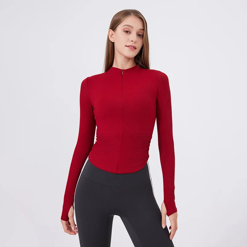 Custom Midriff-baring Yoga Outfit with Half-zip; Fitness Top for Exercise; Long-sleeved Cover-up for Pilates Training