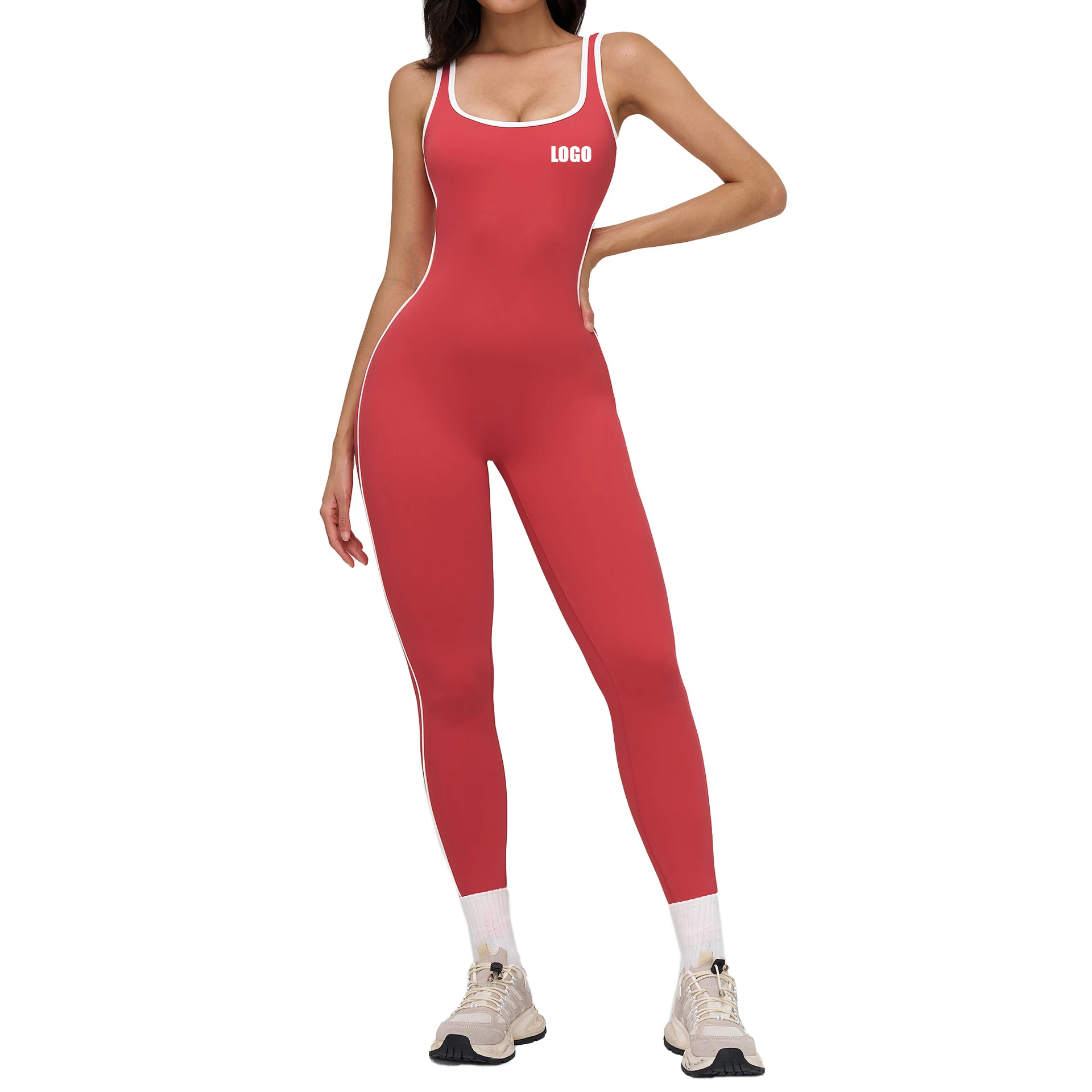 Sportswear Contrast Color Jumpsuit Spaghetti Strap Full Length One-piece Hollow Out Quick Dry Fitness Gym Jumpsuit
