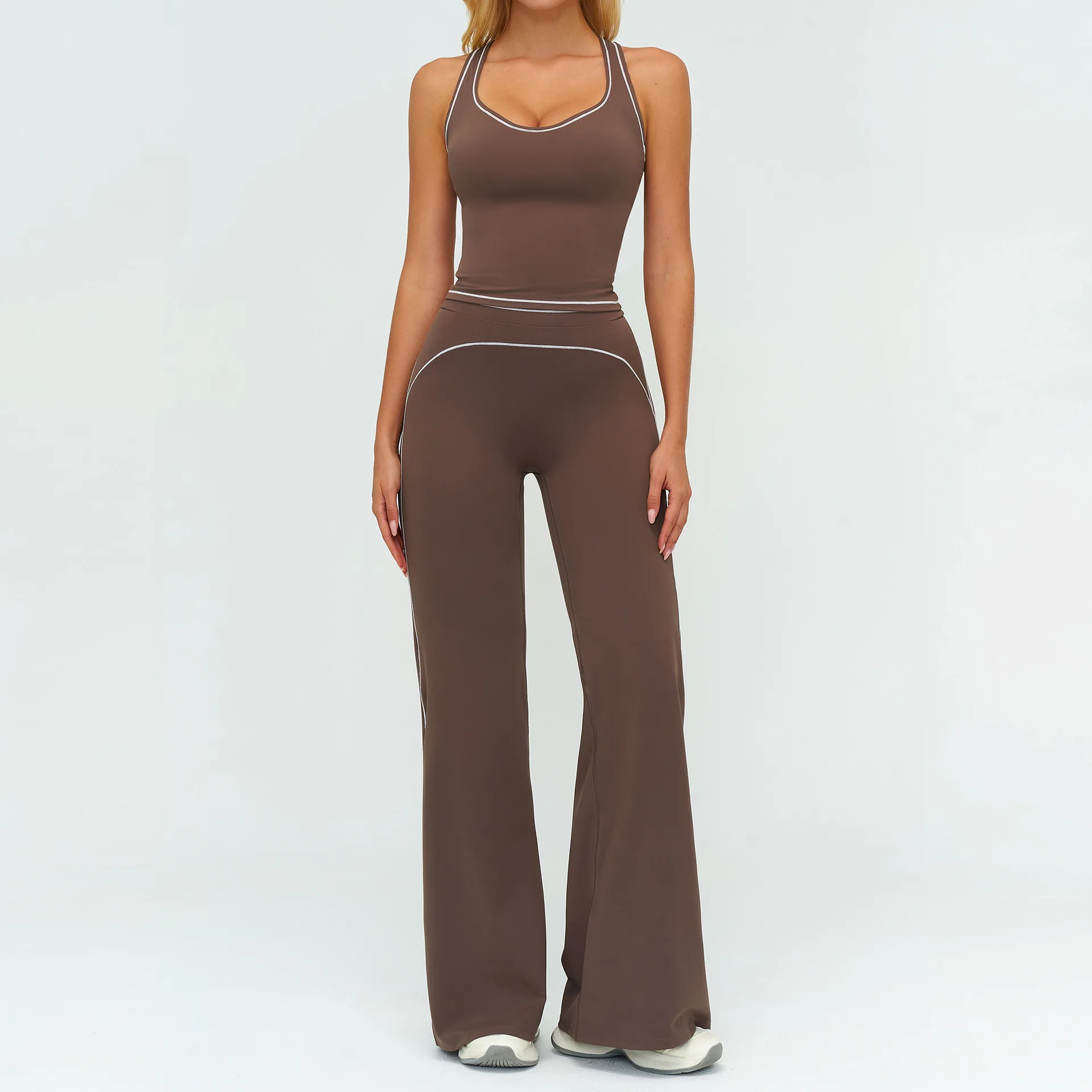 New Women Tracksuit Wide Leg Flare Jogger Pants G String Tank TopSet Custom Sets for Women Fitness Gym Jogging Wear Activewear
