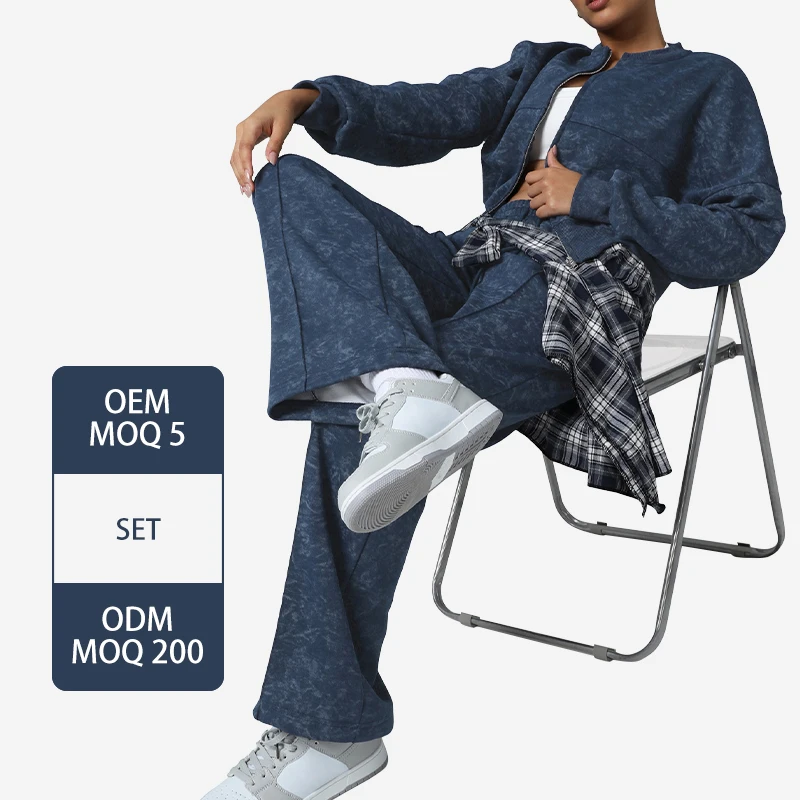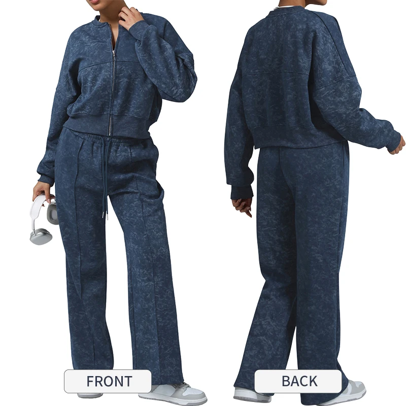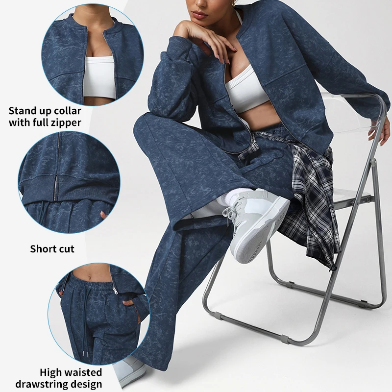 Sm2562 Women Stand Collar Hoodies High Waist Drawstring Pants Sports Autumn and Winter Loose Suit