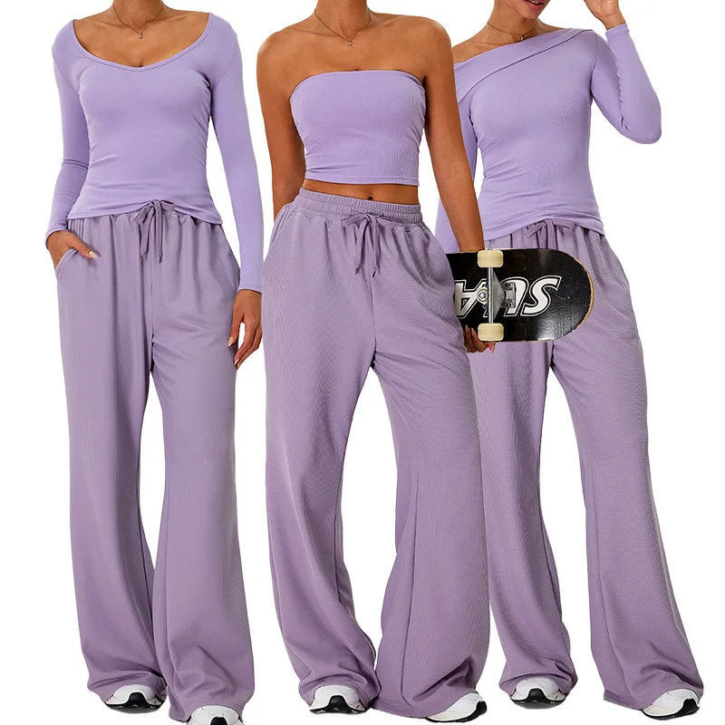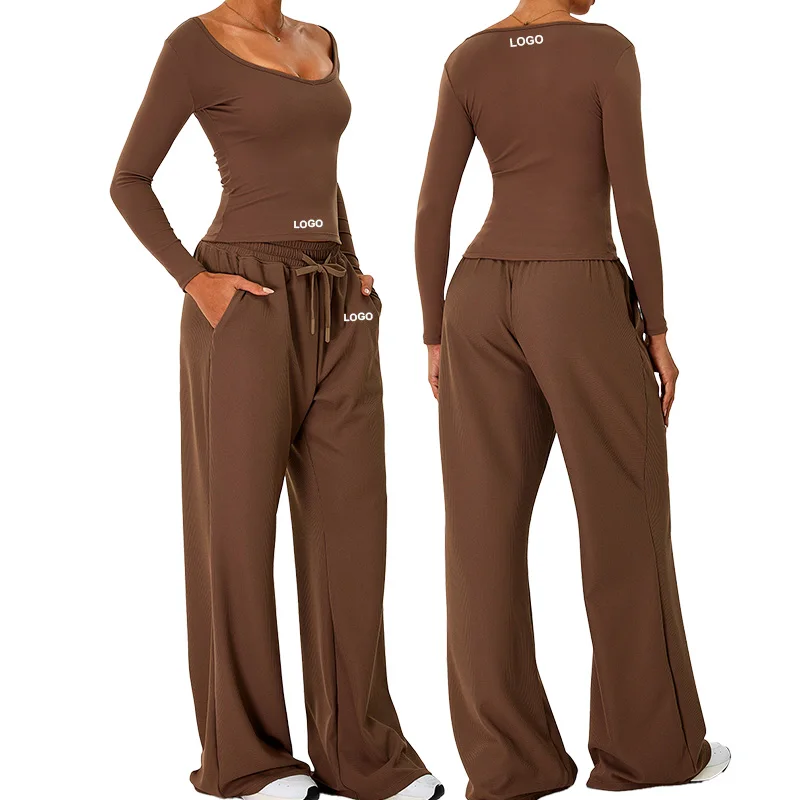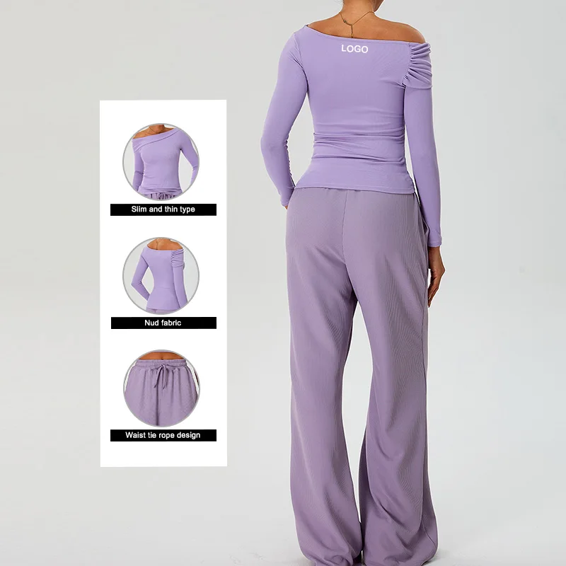 TM0272Y Yoga Set with Long-sleeved Strapless Quick-drying tank Top Sports Top for Shaping the Back Wide Leg Sports Pants