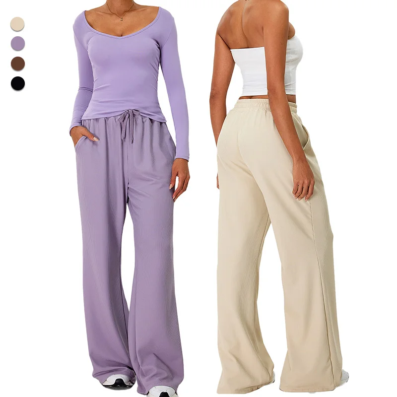 YISHENHON High Quality Gym Yoga Flare Leggings Hot Selling High-Waisted Wide Leg Pants for Women Solid Casual Sport Running