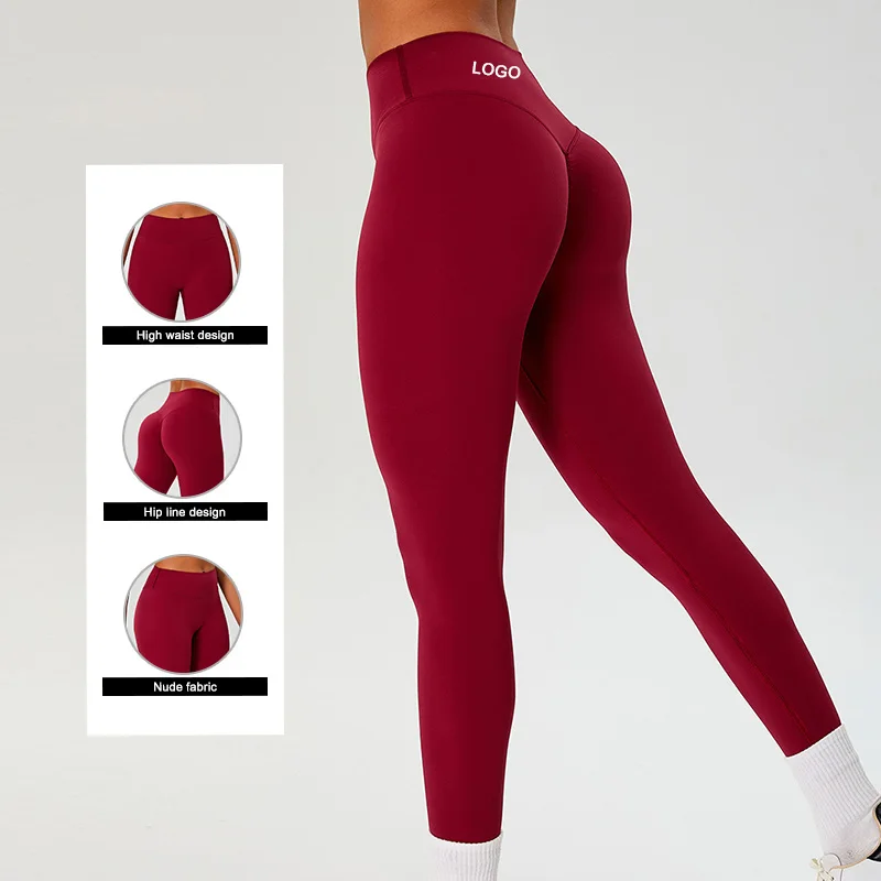 TM0271 Nude Fabric High Waist Yoga Pants Lift-hip Line Quick-drying Breathable Exercise Leggings for Outdoor Running