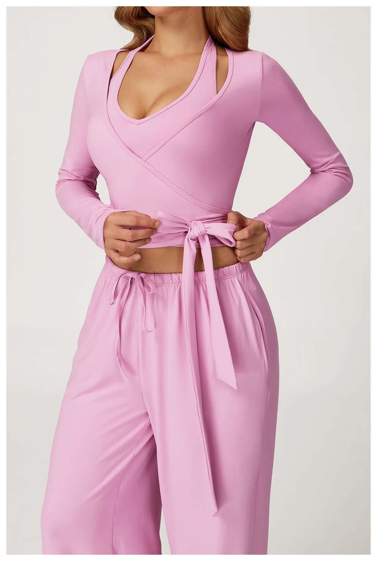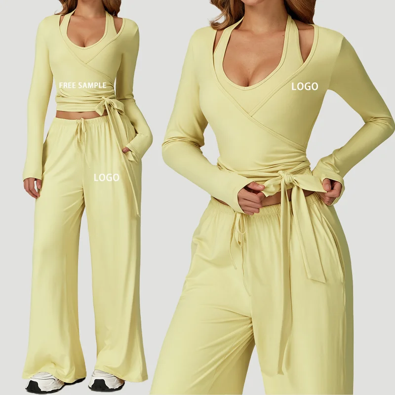 Custom logo Women's Sportswear Gym Clothes Halter Neck Sports Bra Active Leggings Longsleeve Top Gym Fitness Sets Yoga Sets