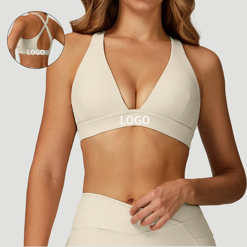 Women's Cross-Back Yoga Bra for Running Fitness Beauty Sports Underwear with Logo on Front Plus Size Breathable Four-Way Stretch