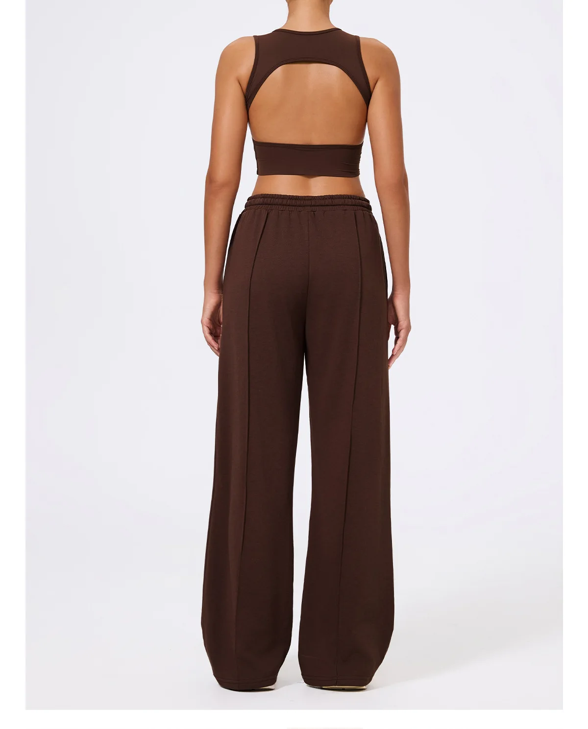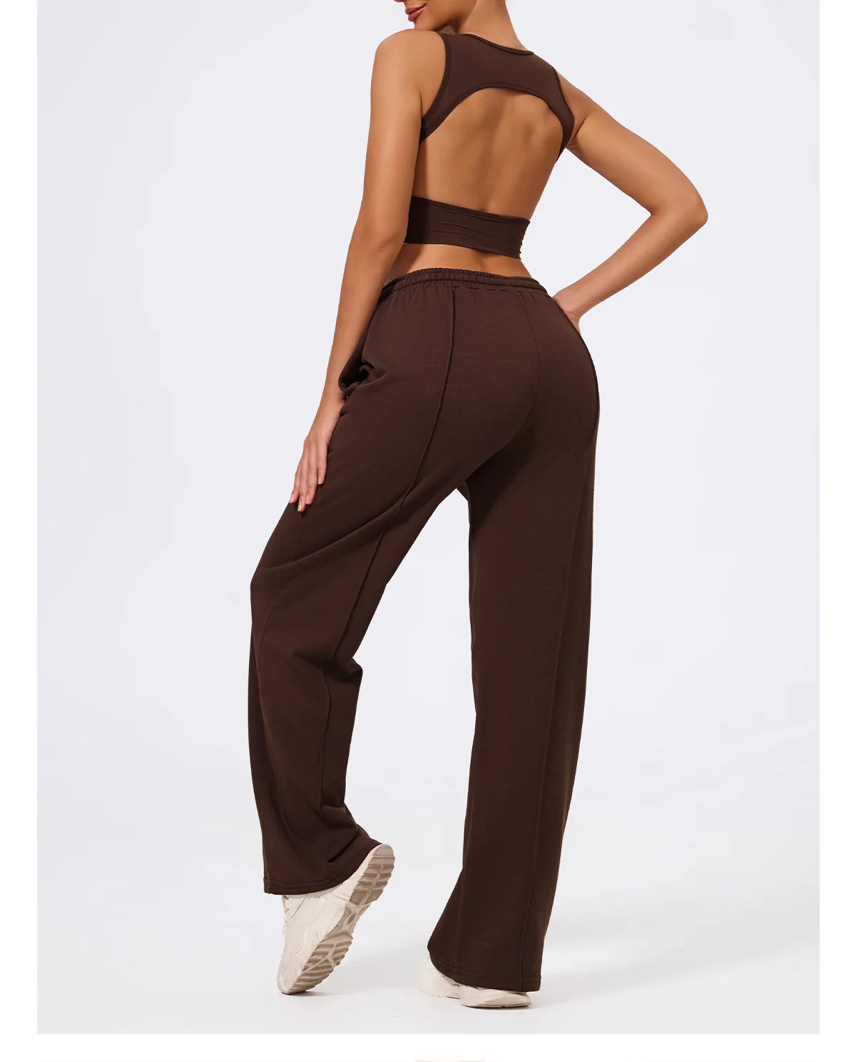 YISHENHON High Quality Gym Yoga Flare Leggings Hot Selling High-Waisted Wide Leg Pants for Women Solid Casual Sport Running