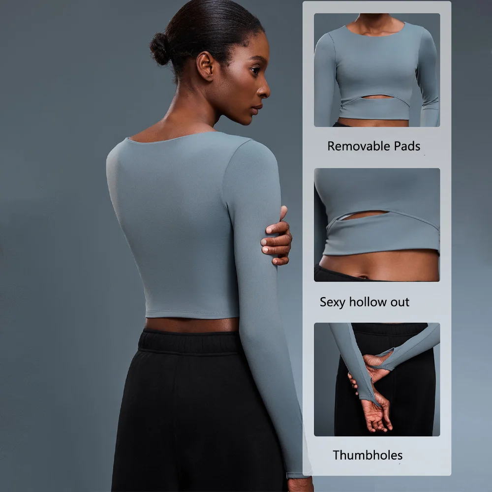 Roregal Fitness New Style Long Sleeve Women Slim Fit Gym Workout Yoga Tops Gym Top Yoga Wear