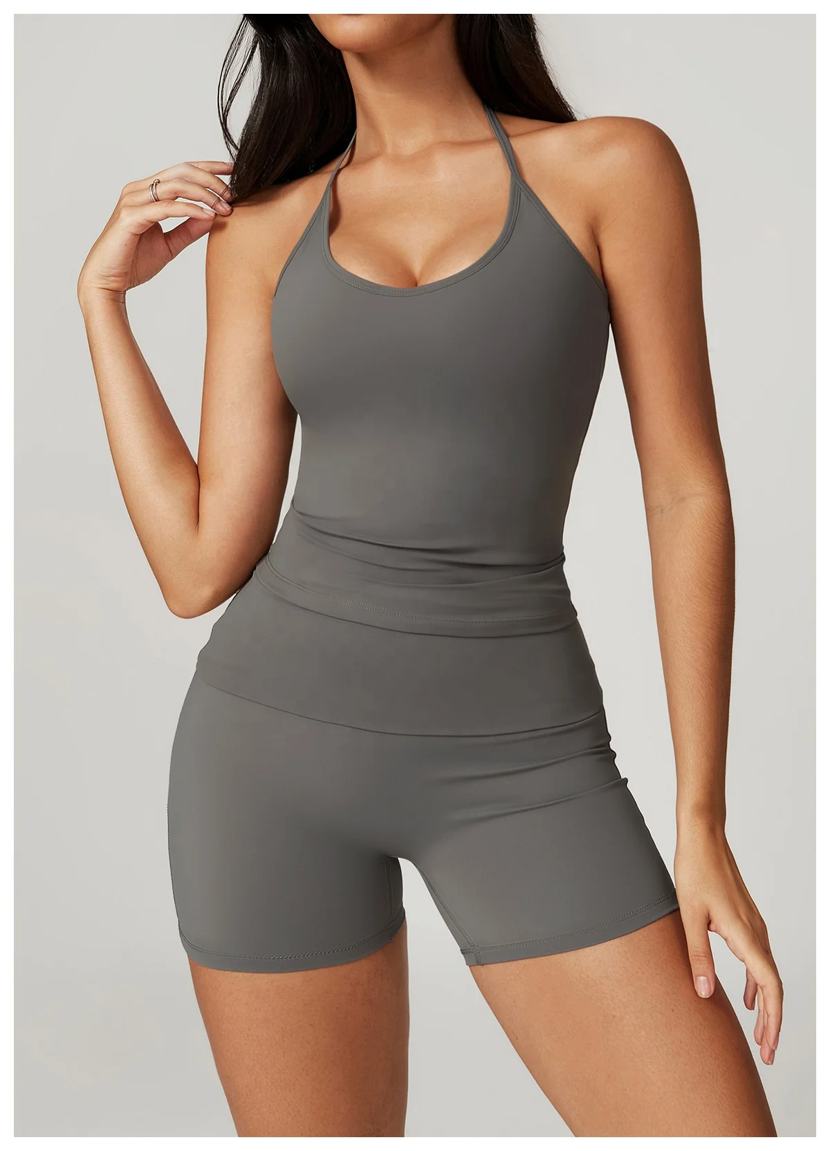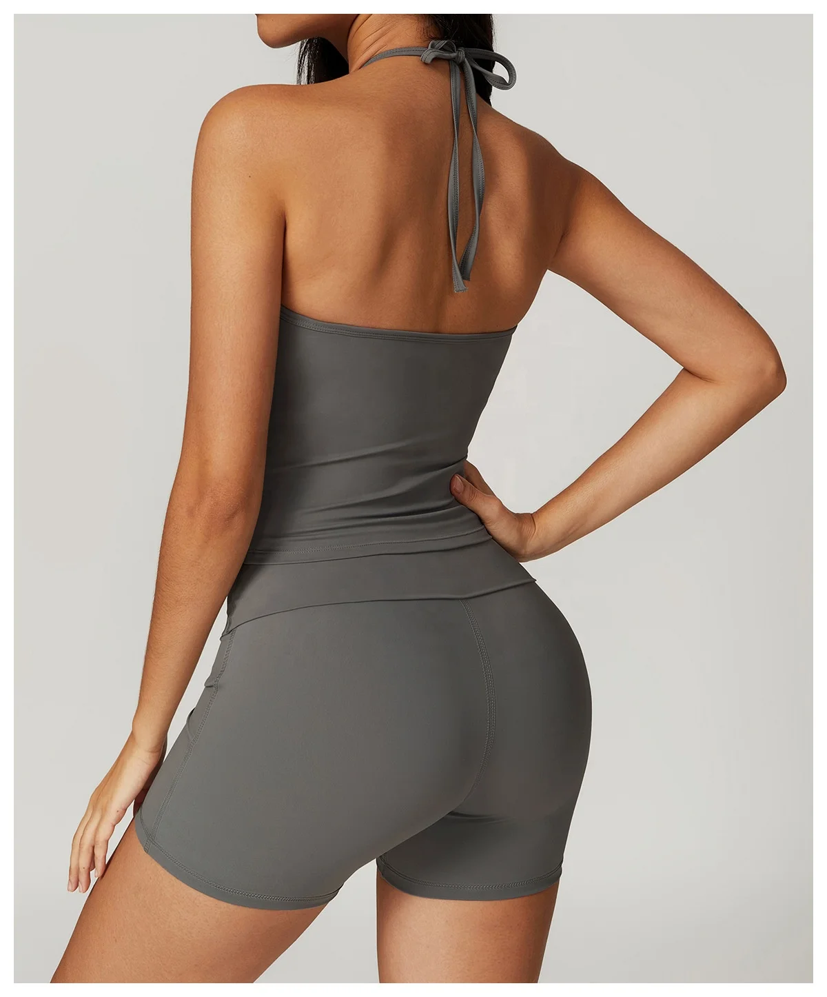 Hanging Neck Tight Beautiful Back Yoga Suit Quick-drying Flip Fold High Waist Leisure Hundred Fitness Sports Suit