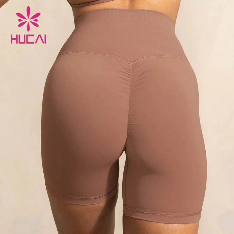 HUCAI OEM Vintage Custom logo Printed High Waist Scrunch Butt Lifting Fitness Yoga Biker Shorts for Women Sexy