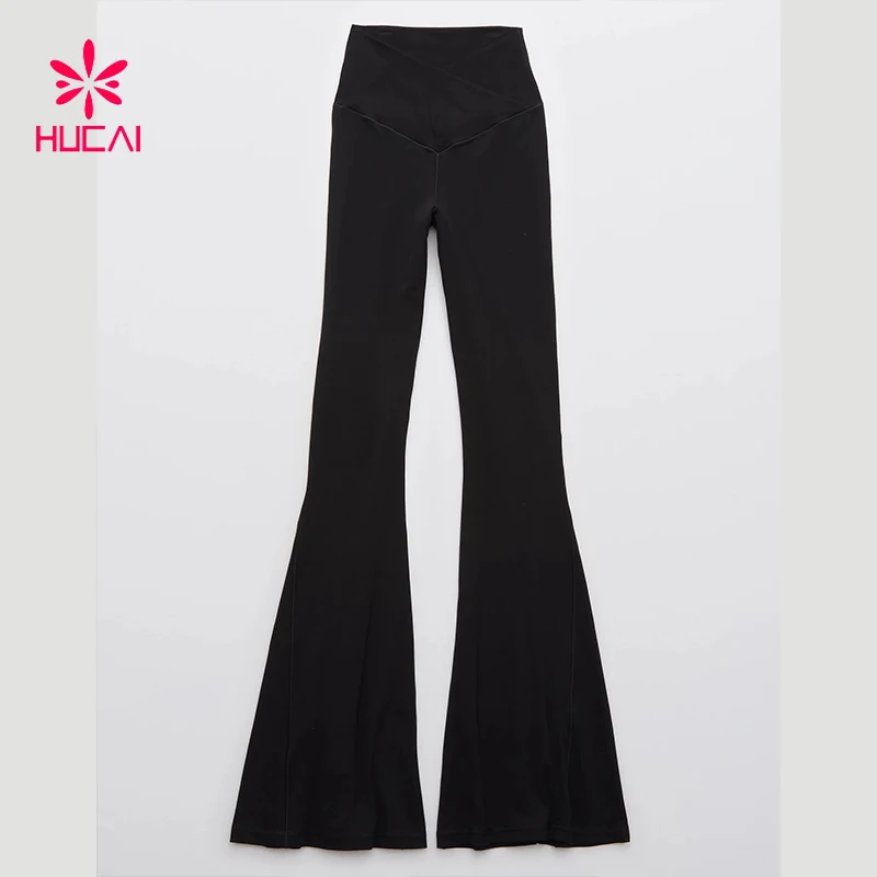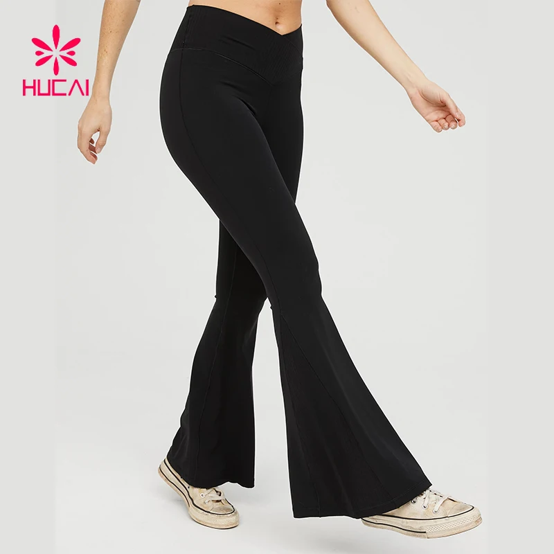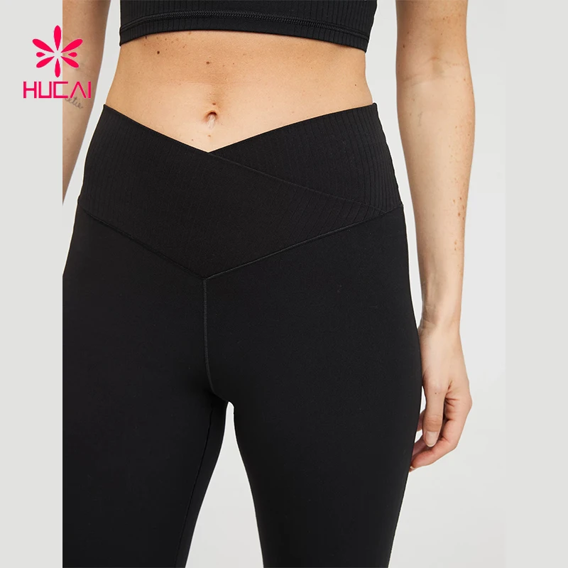 Custom Womens New High Waisted V Shape Cut Tummy Control Crossover Yoga Fitness Pants Rib Super Flare Legging