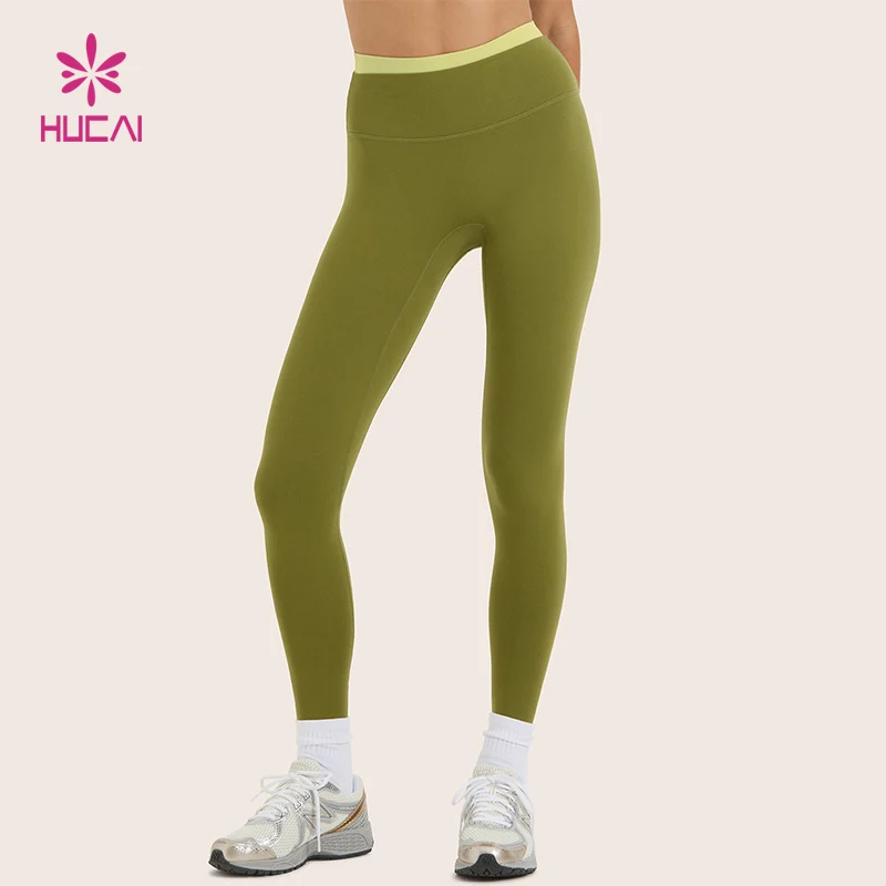HUCAI Custom Contrast Color No Front Seam Polyester Gym Active Training Leggings Yoga Pants for Women