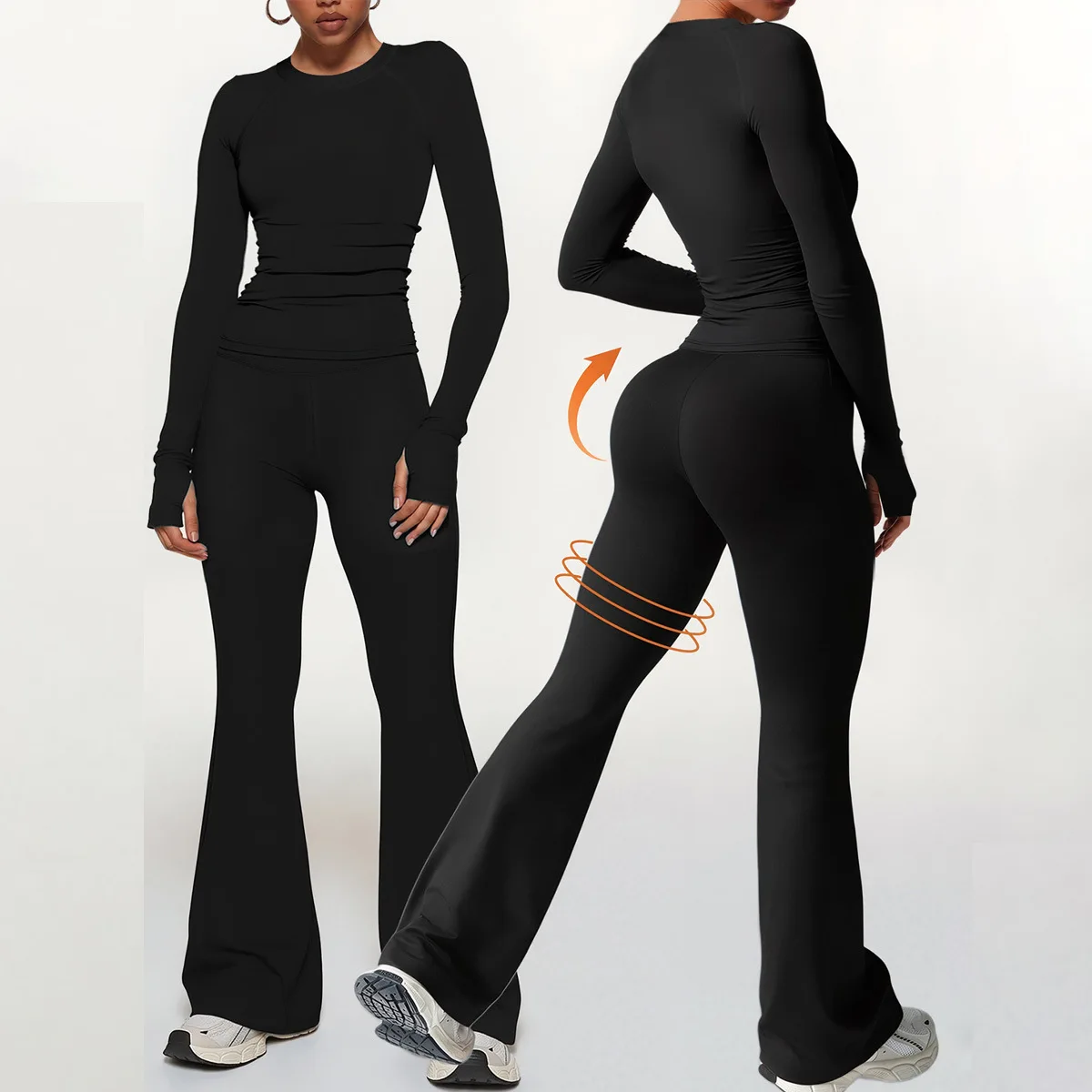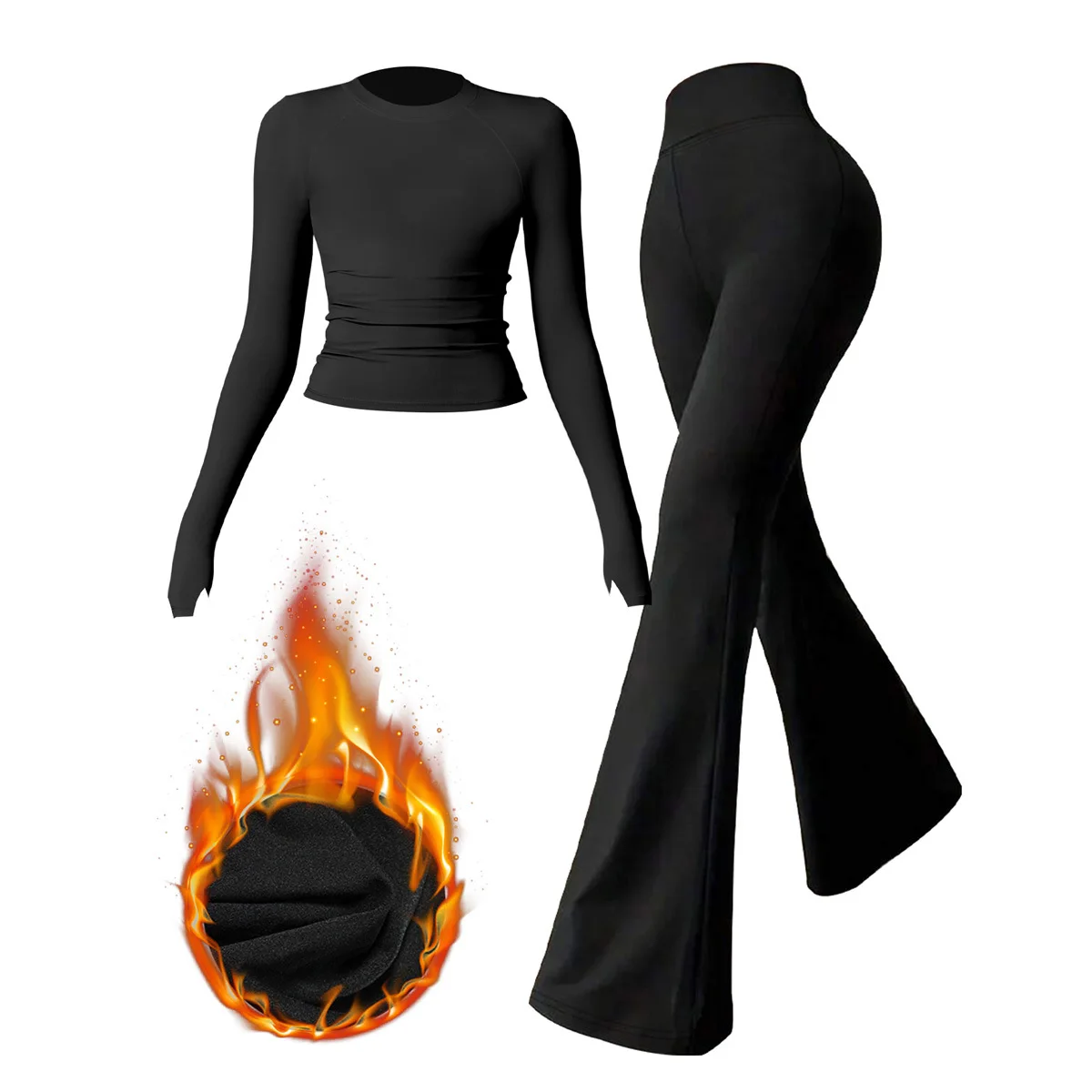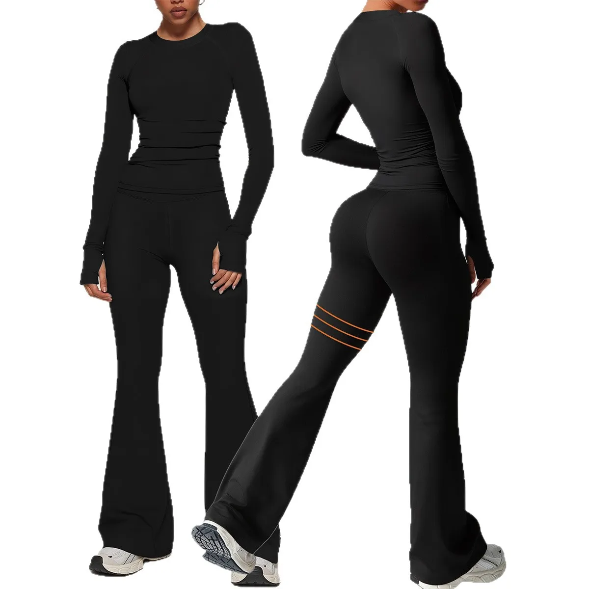 Cross-Border Sports Fitness Yoga Set Warm Pullover Long-Sleeve Top Flared Pants Elastic Print XL Workout Fashion Suit 2 Pieces