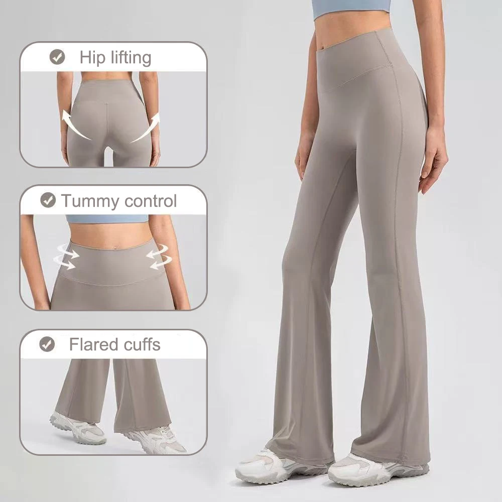 YISHENHON High Quality Gym Yoga Flare Leggings Hot Selling High-Waisted Wide Leg Pants for Women Solid Casual Sport Running