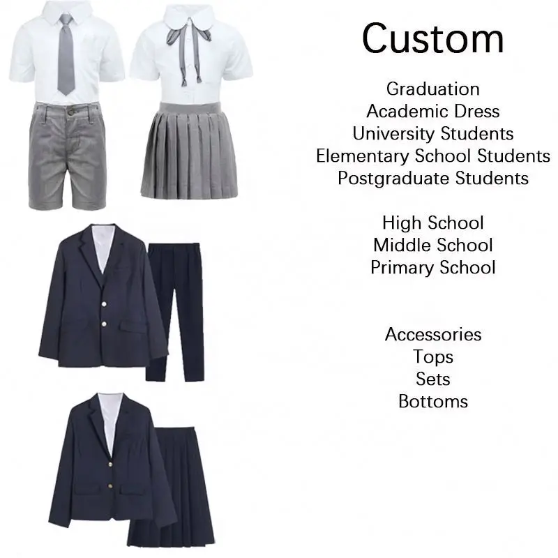 Custom OEM Wholesale Primary Children Kid Uniform Set High Middle School University Kindergarten School Uniforms