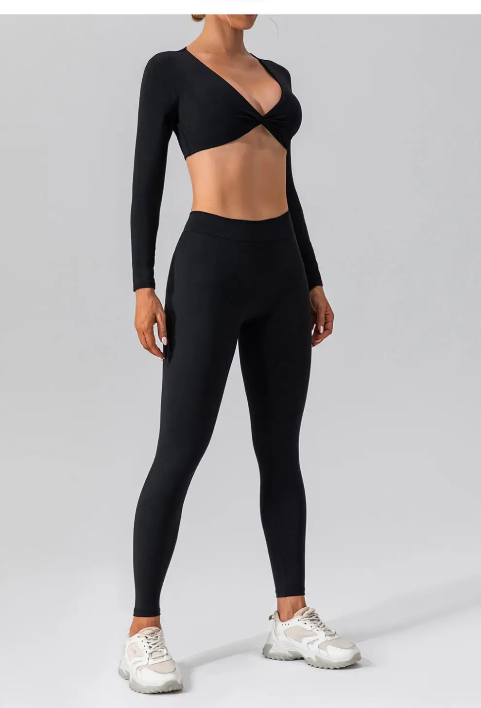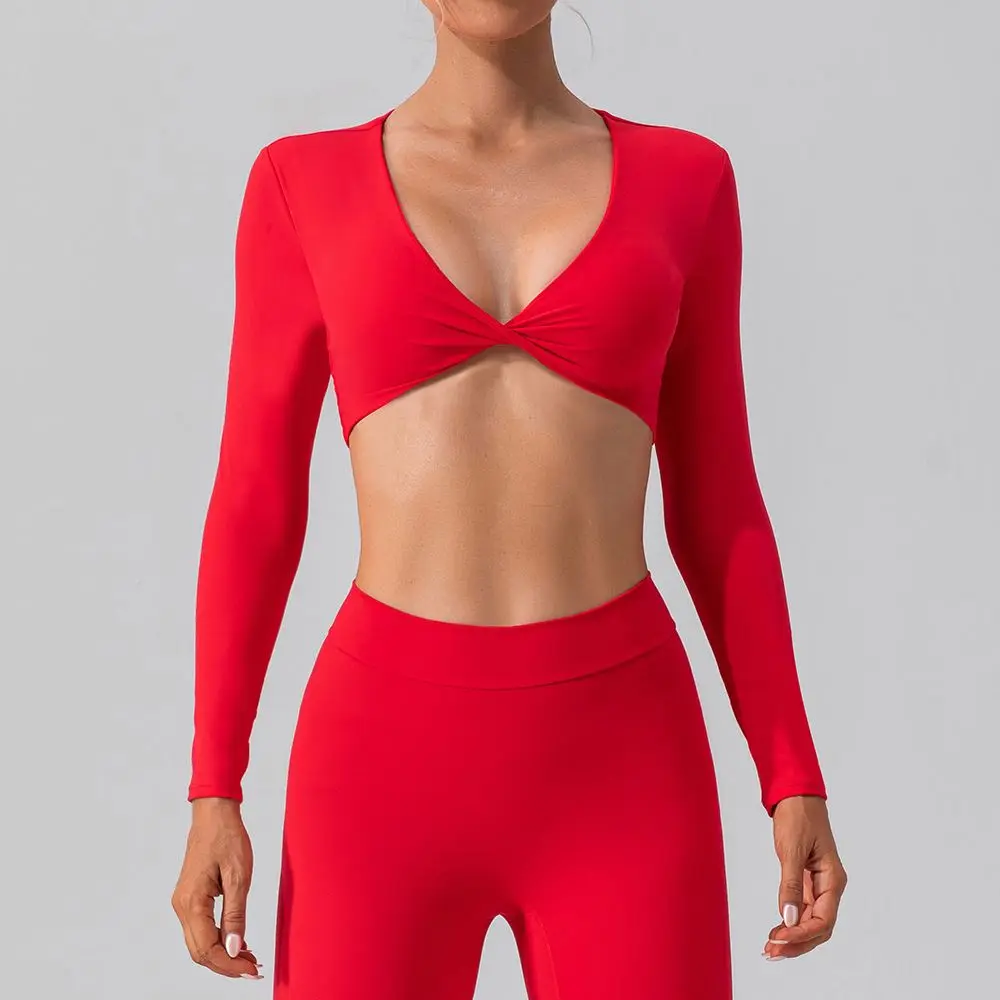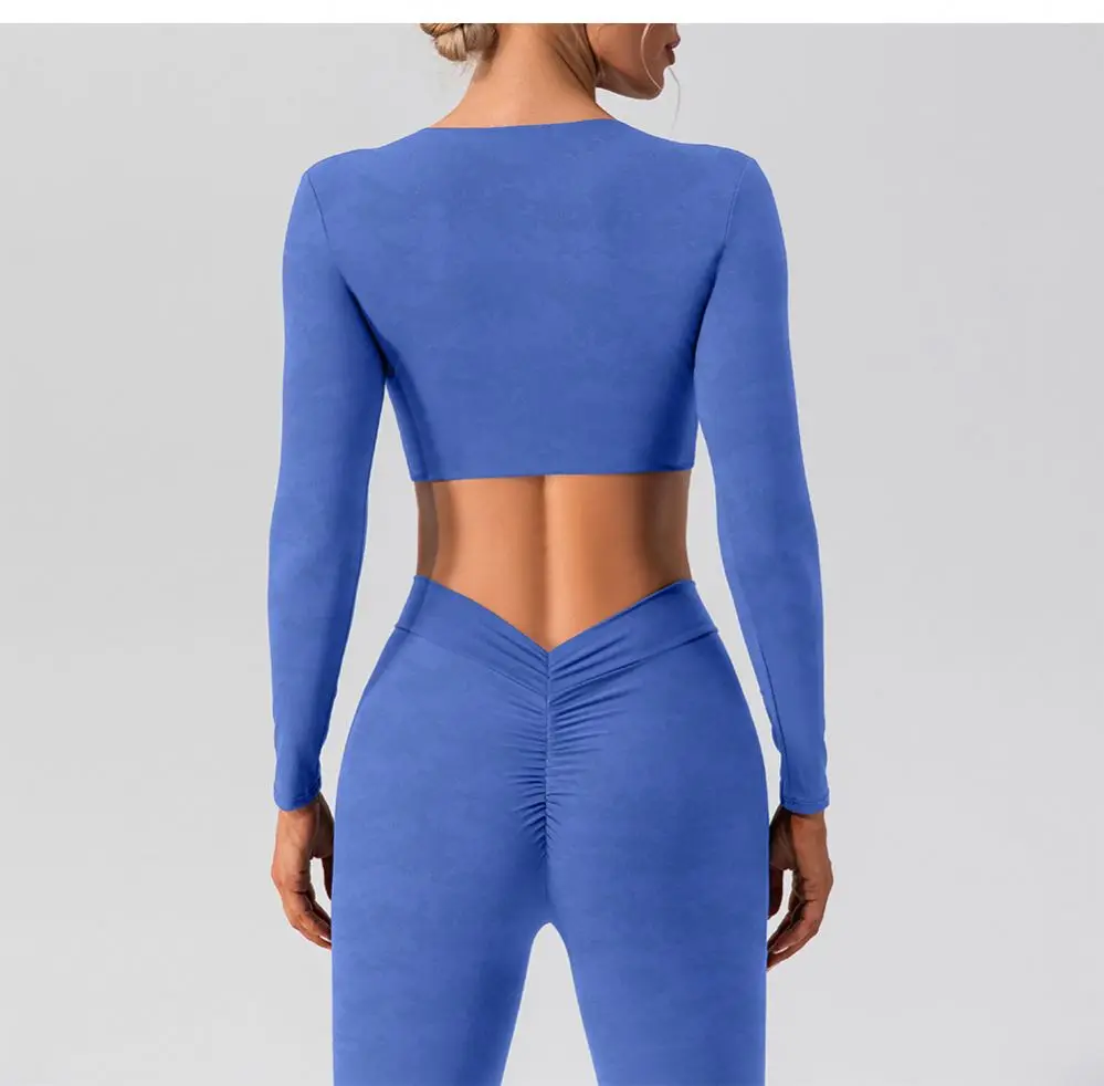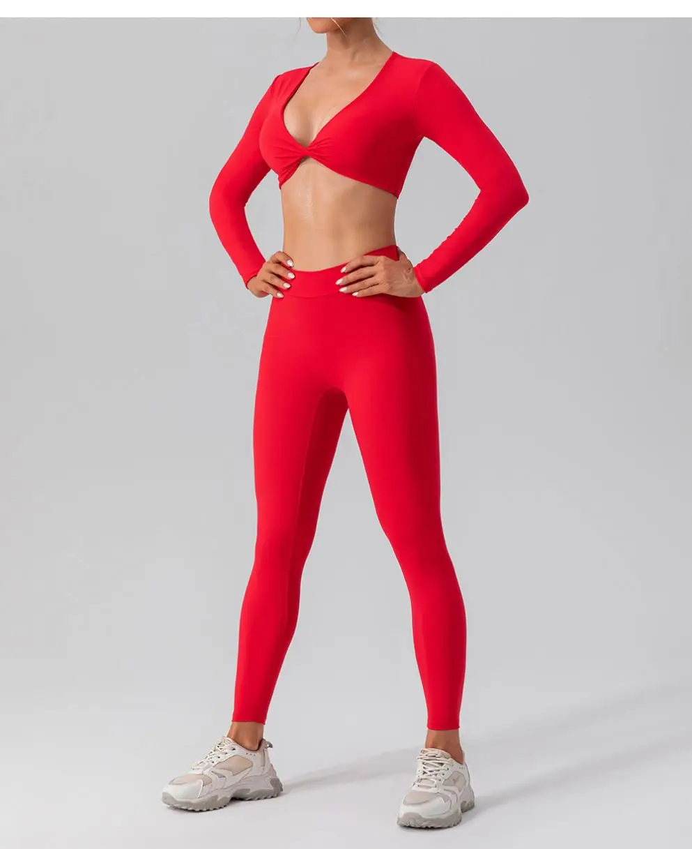 Custom Ropa Deportiva Mujer Front Twist Long Sleeve Crop Top Yoga Sets Gym Activewear Workout Fitness Sets