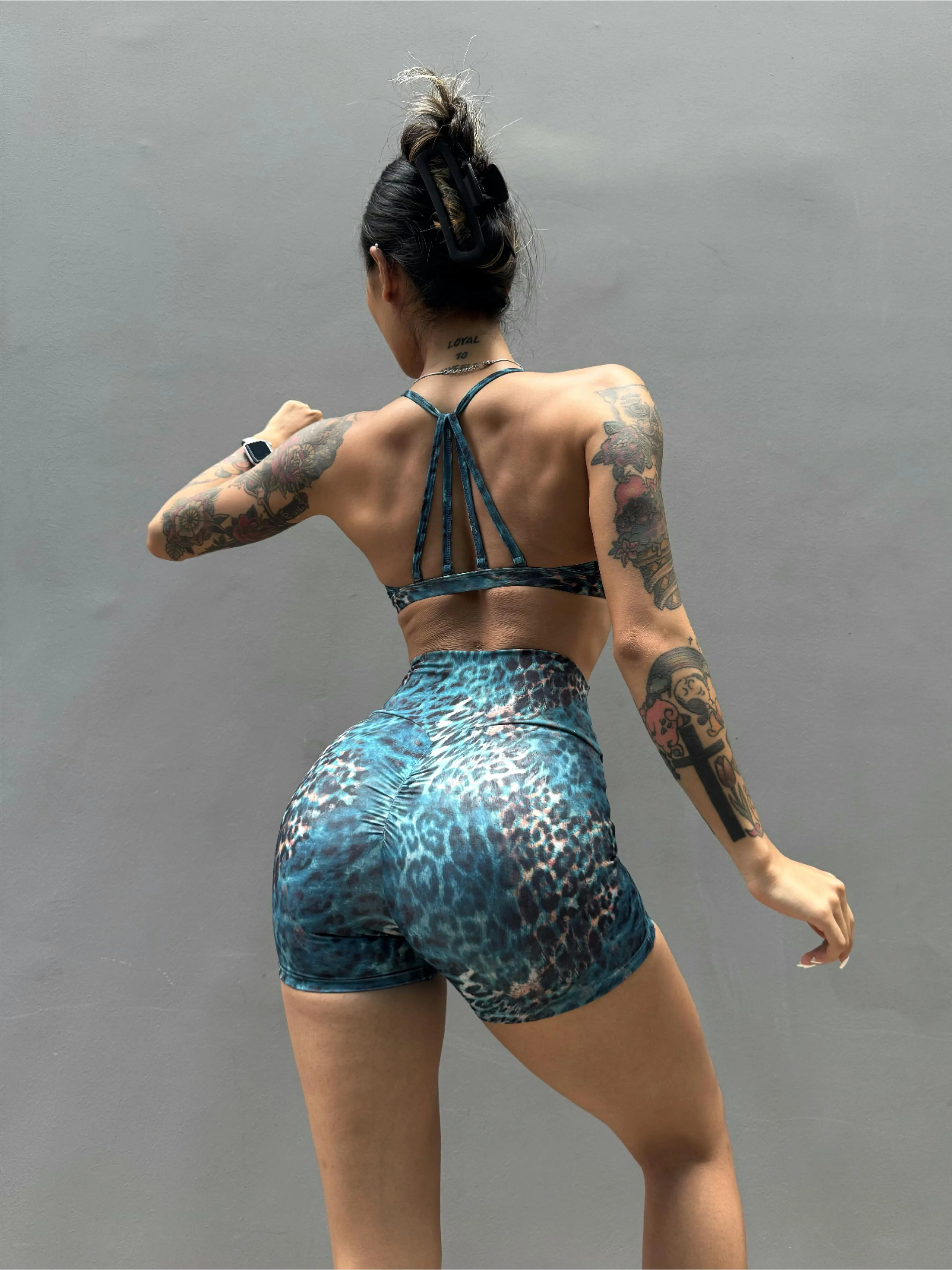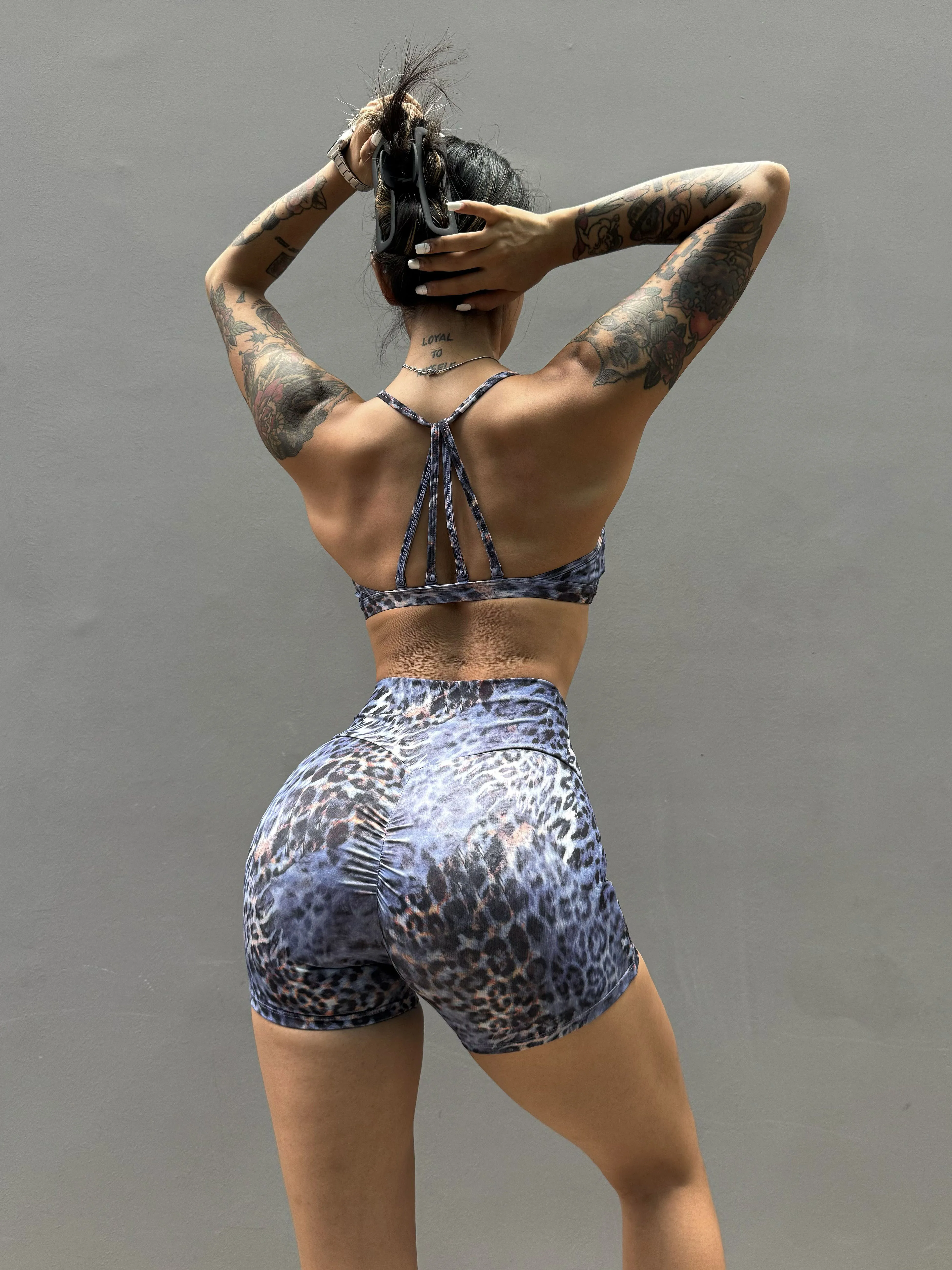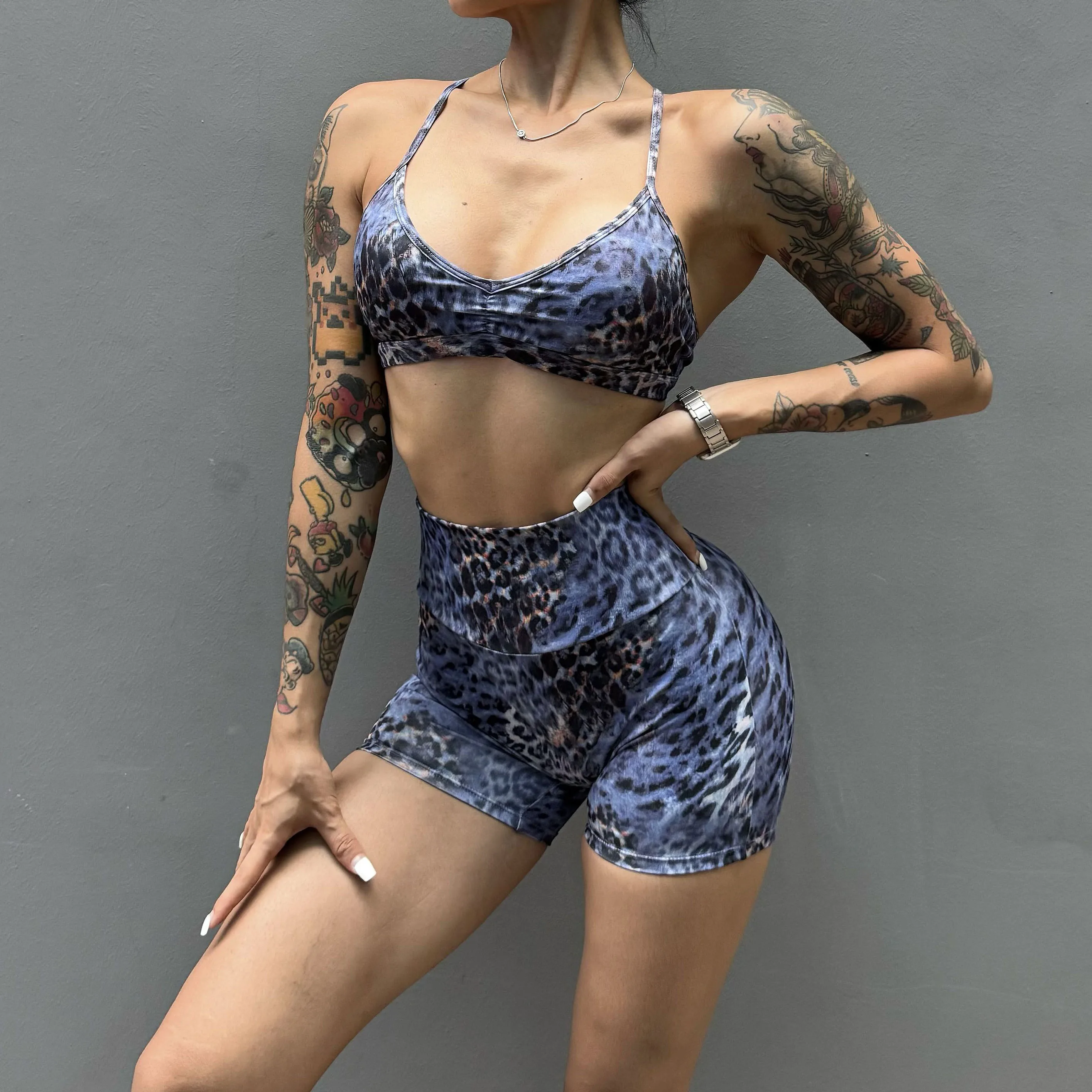 Custom Active Wear Gym Fitness Sets Workout Clothes for Women Leopard Print Leggings Set Scrunch Butt Shorts Set