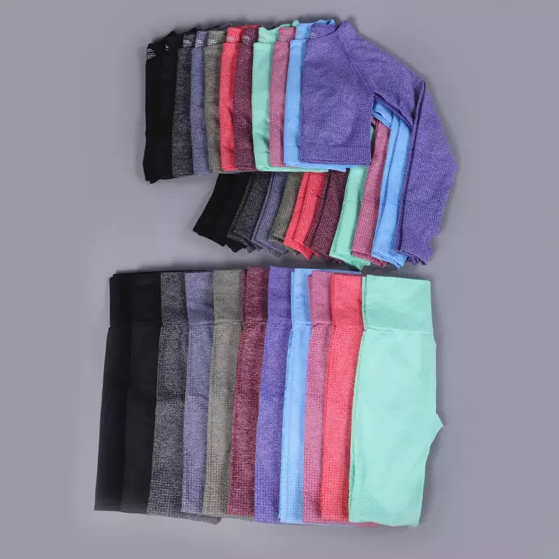 YISHENHON Wholesale Women's Gym Seamless Yoga Sets Custom Logo High Waist Legging Activewear Fitness Breathable Sport Suits