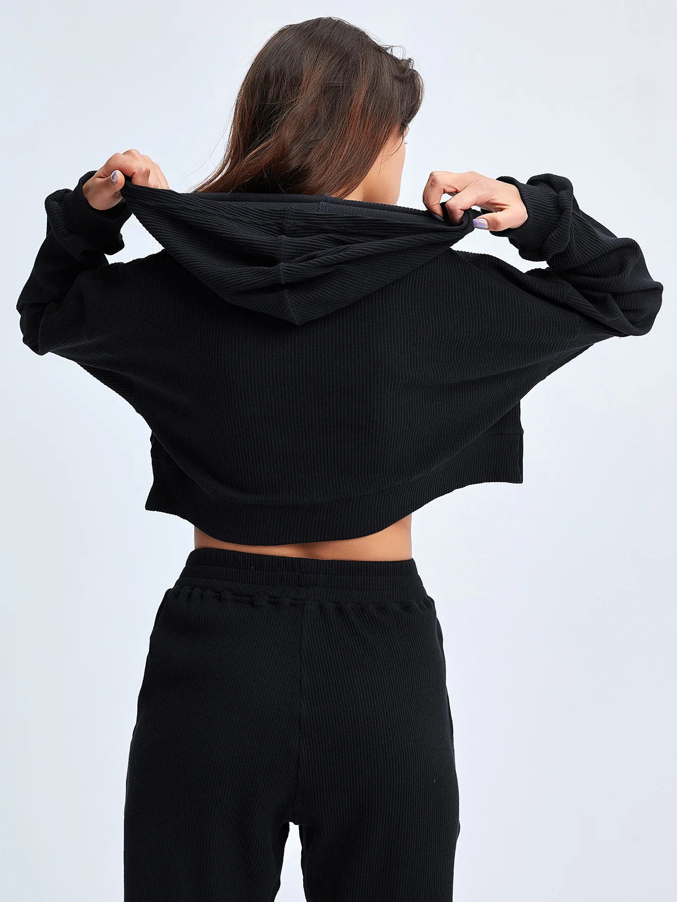 Long Sleeve Hoodies Crop Top Yoga Suit Jogger Pants Womens Loose Activewear Workout Hoodie Sets for Women Fitness Clothing Sets