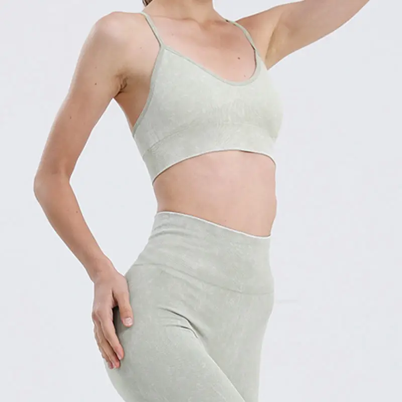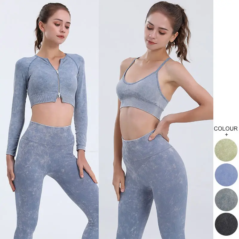 Women's Sets Seamless Acid Wash 5 Piece Yoga Set Athletic Sports Wear Gym Fitness Clothing Set