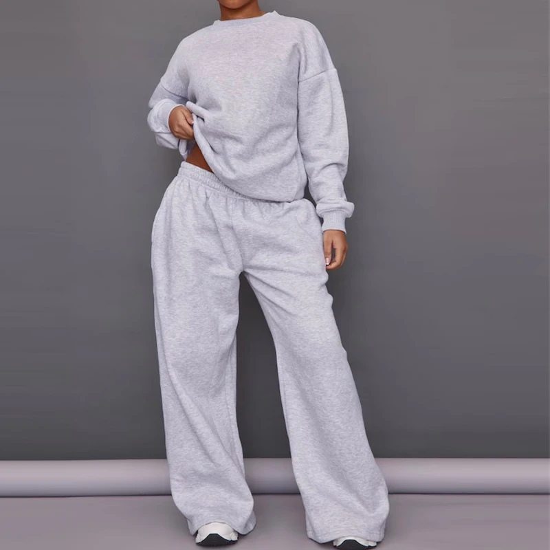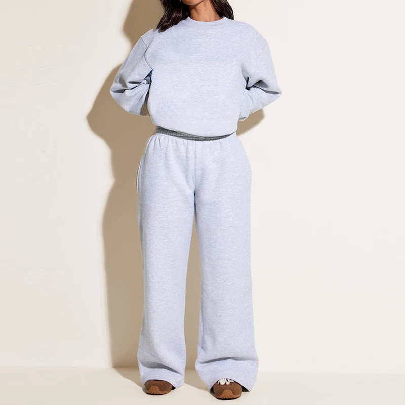 Custom Plain French Terry Sweatsuit Crew Neck Sweatshirt Sweat Pant 2 Pieces Set Cotton Tracksuit for Women