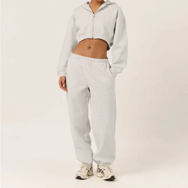OEM and OEM High Quality Cotton Heavyweight Two Piece Jacket Crop Top and Pant Women Workout Outfit Oversize Zip up Tracksuit