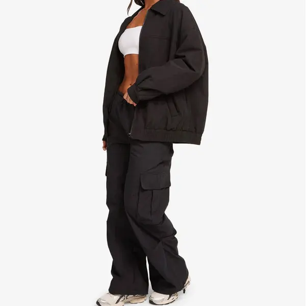 Women Fashion Street Wear Zip up Two Piece Casual CroppedJacket and Windbreaker Outdoor Sports Pants Clothing Workout Tracksuit