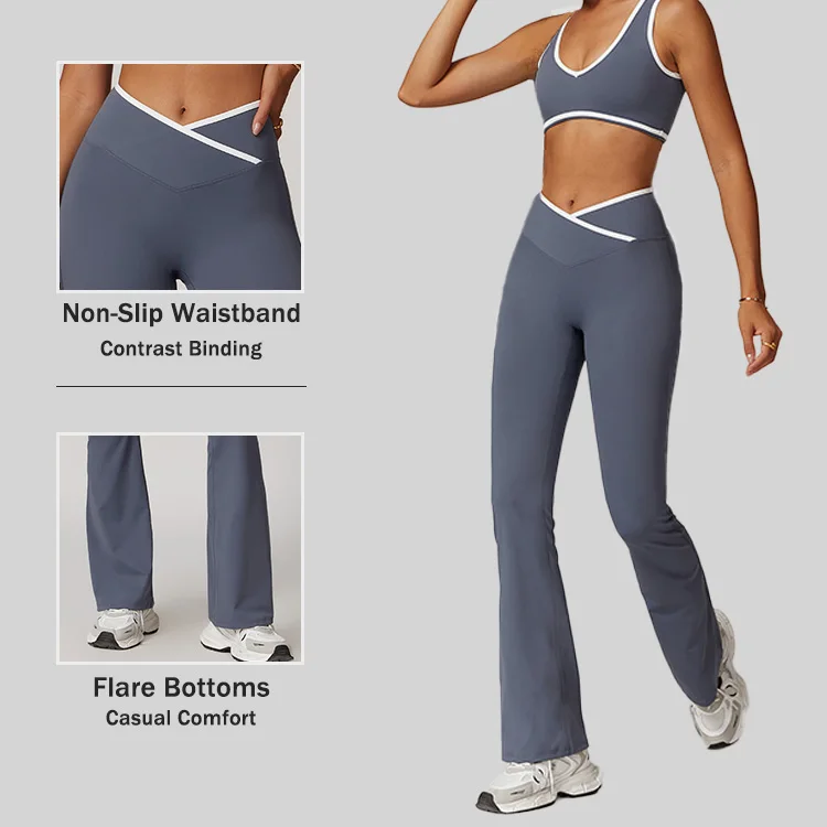 High Quality Women Sport Outfit Gym Fitness Yoga Leggings Lightweight Contrast Binding Flare Bottoms 1pc Activewear Pants