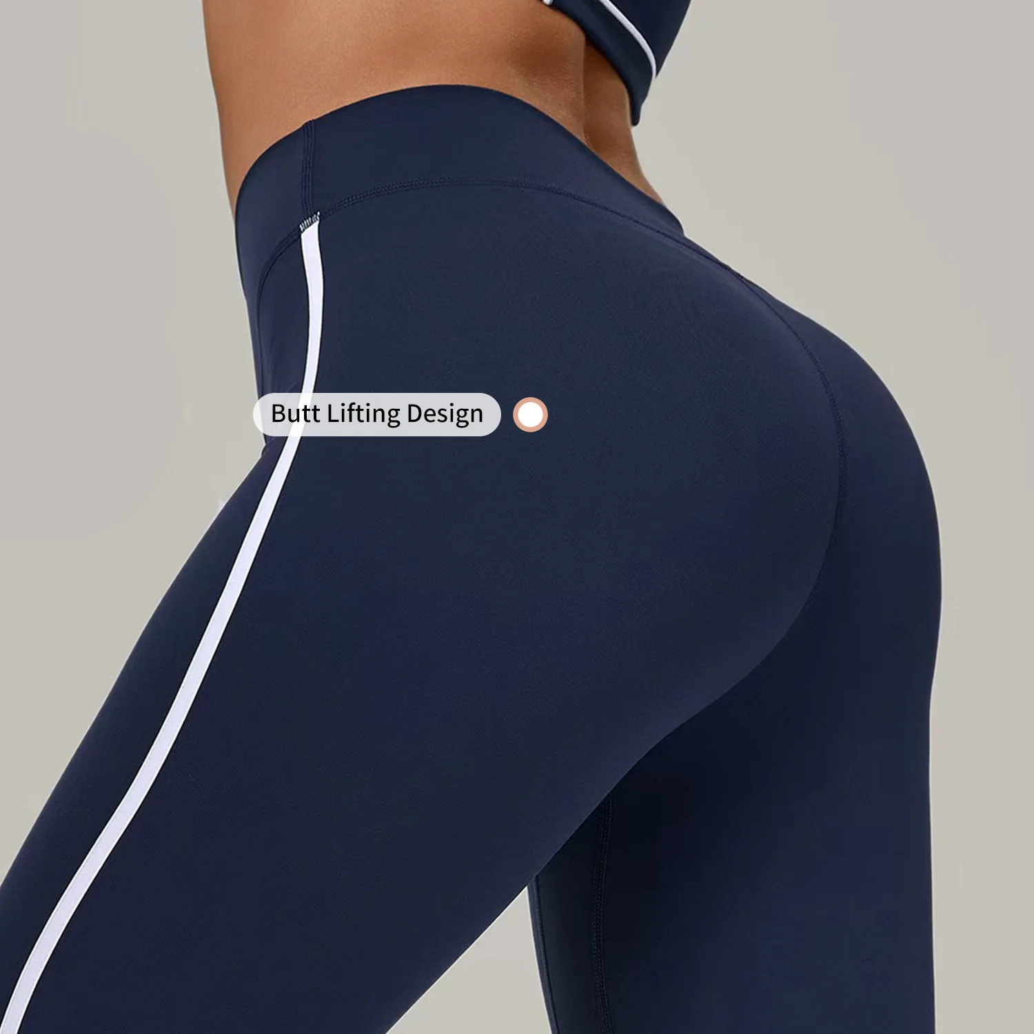 New Contrast Color Stitching Running Quick Drying Yoga Leggings Breathable Tight High Waist Butt-Lifting Fitness Pants for Women