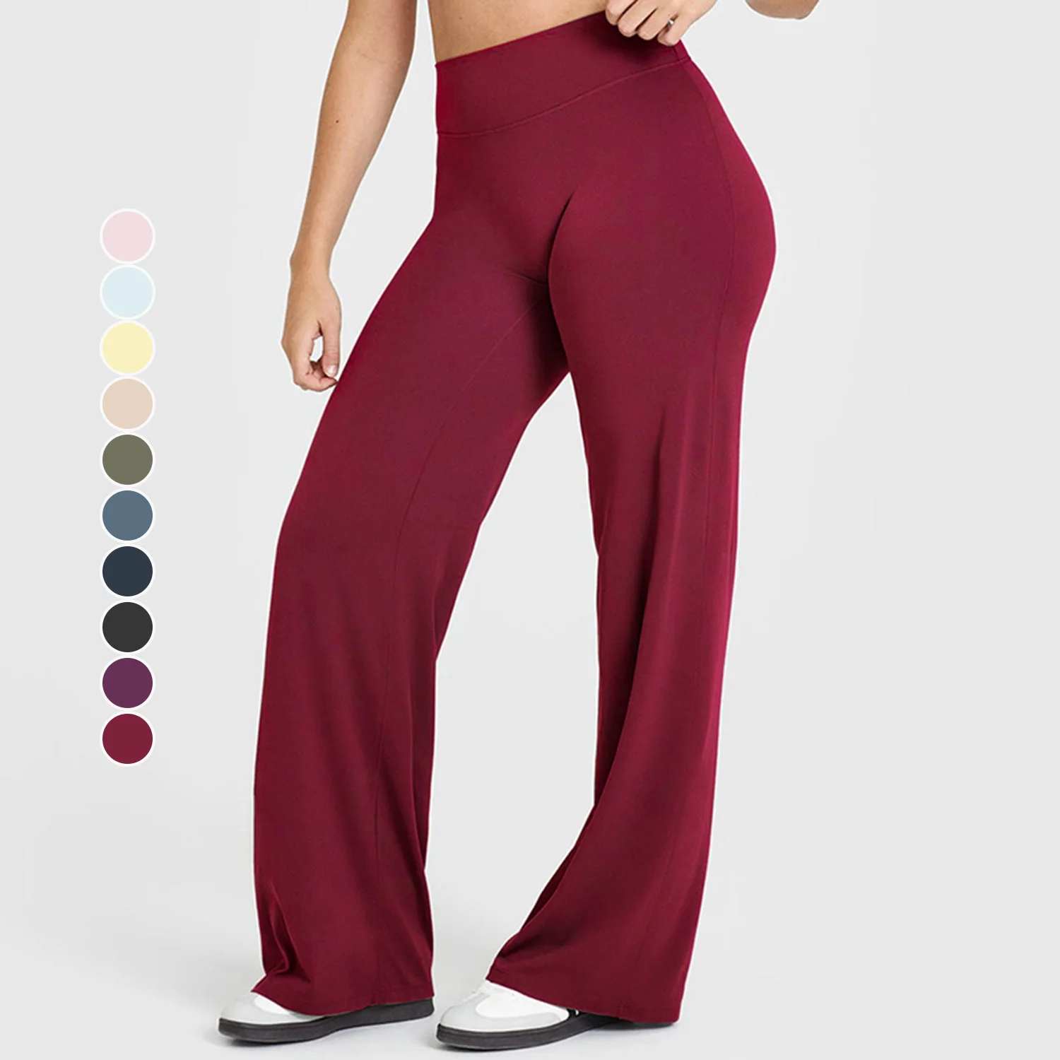 YISHENHON Recyclable Fabric Quick Dry Yoga V Waist Gym Leggings Running Workout Wide Leg Pants Flare Woman Sport Pants