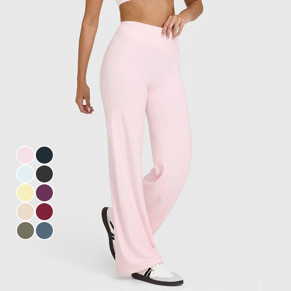 Women's Summer Thin High Waist Straight Pants Flared Wide-Leg Yoga Pants Elastic Loose Slimming Naked Feel Sports Fitness Pants