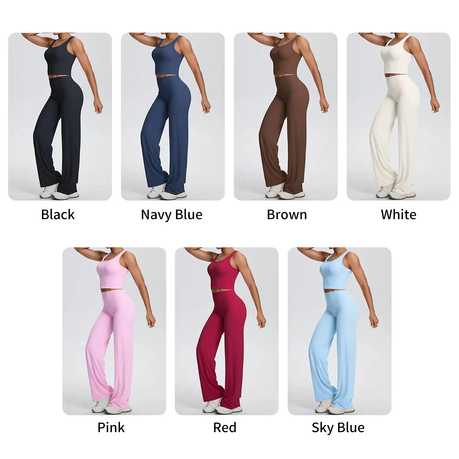 YISHENHON High Quality Gym Yoga Flare Leggings Hot Selling High-Waisted Wide Leg Pants for Women Solid Casual Sport Running