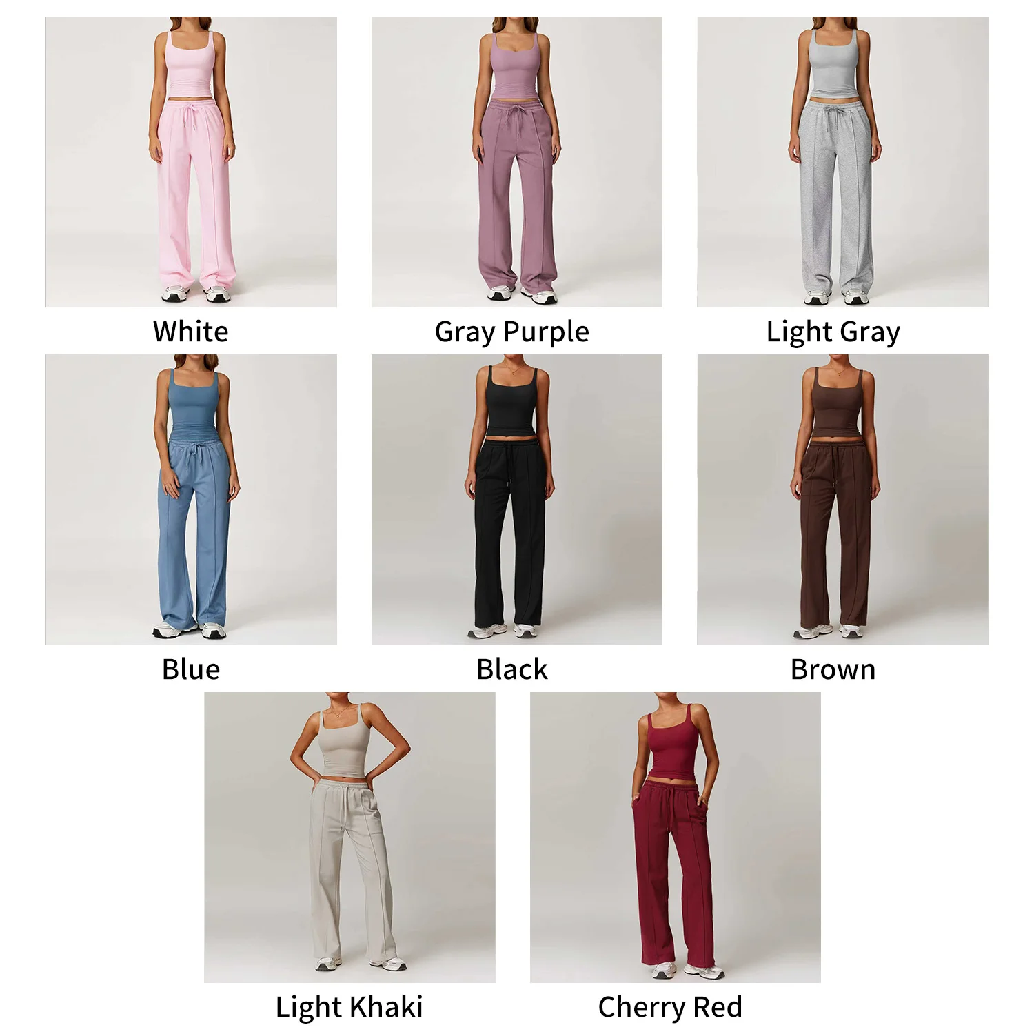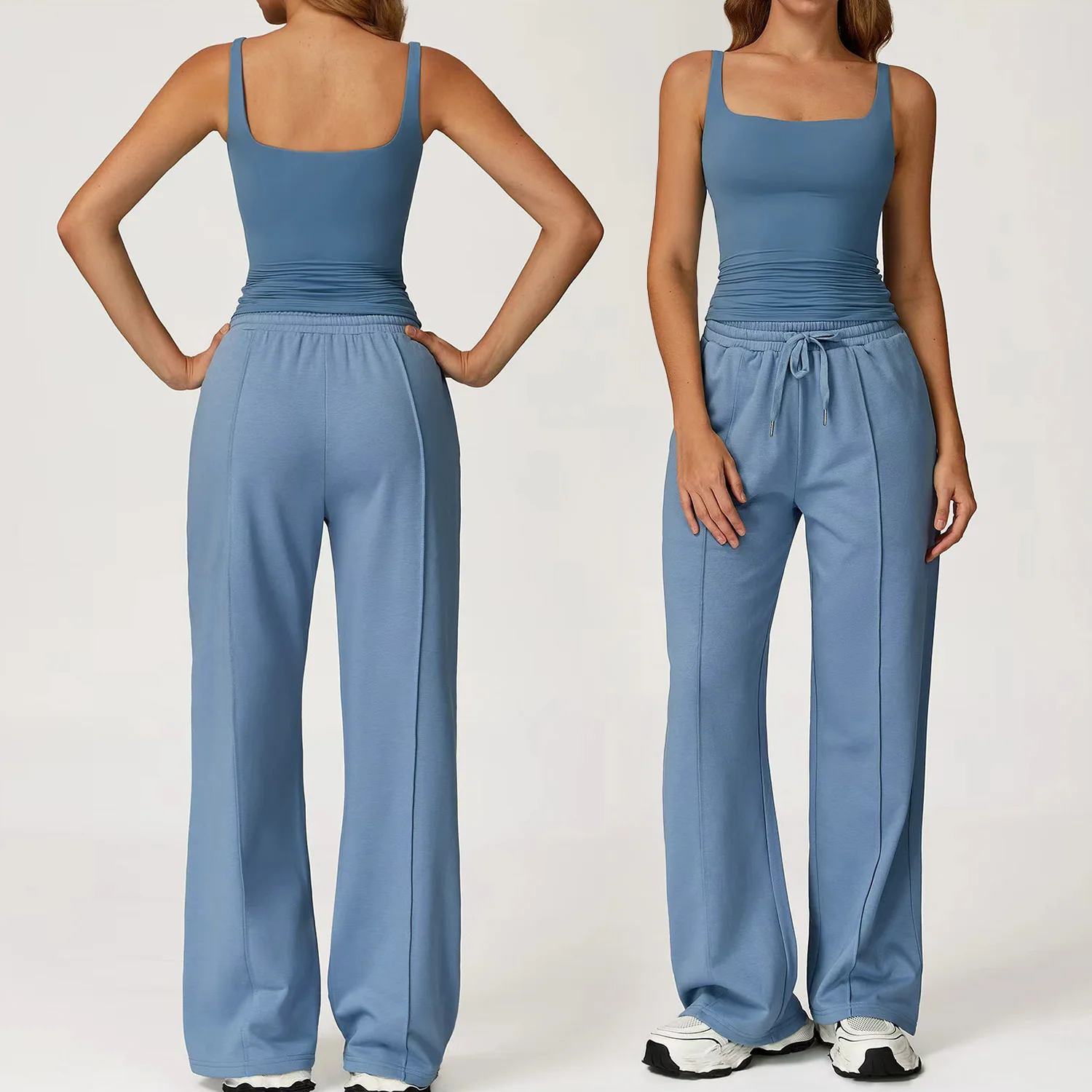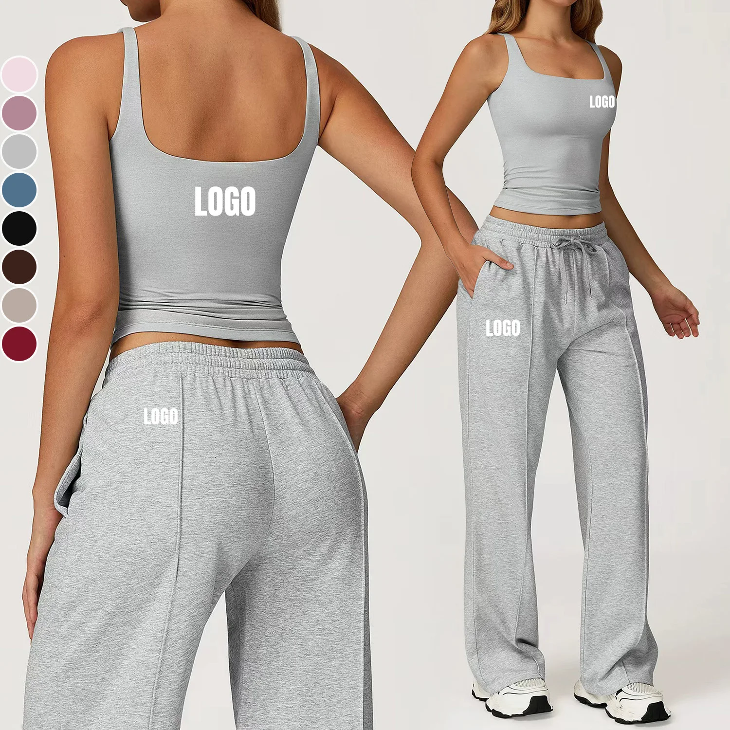 Custom Women's Quick Dry Backless Sports Fitness Sets Breathable Yoga Tank Top Loose Wide Leg Sweatpants Womens Running Gym Sets